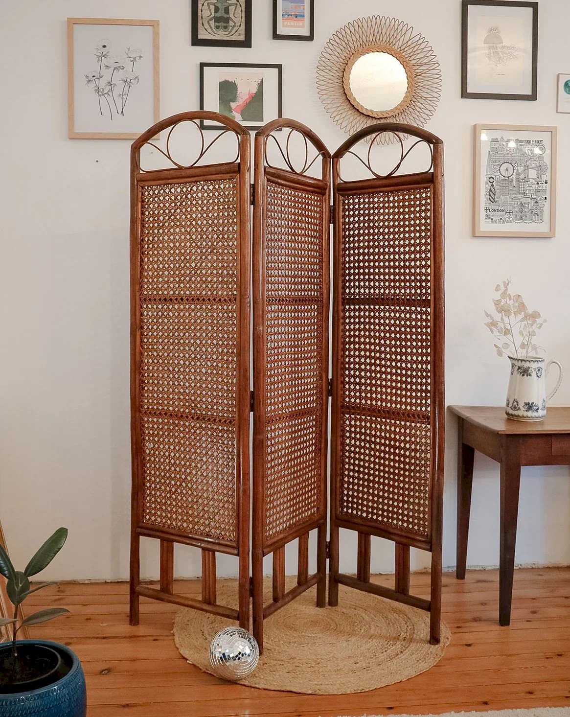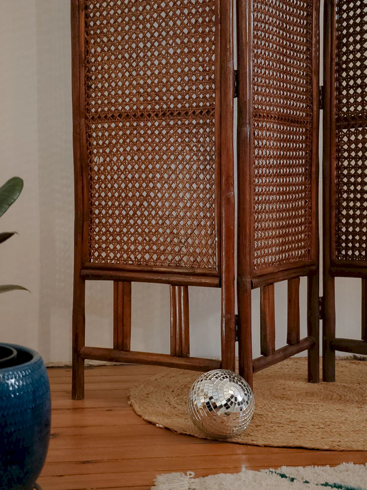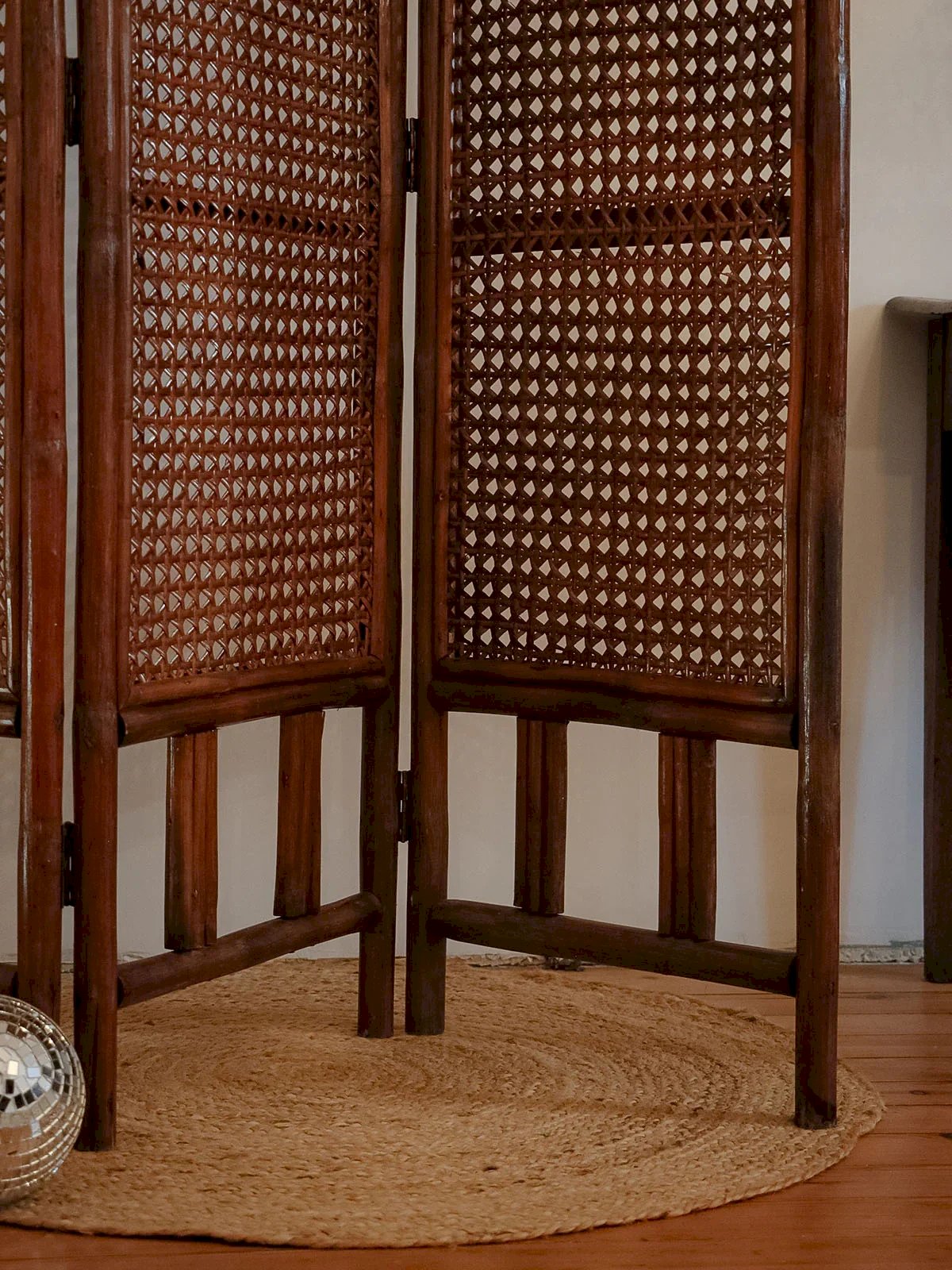 Invitez ce paravent en rotin et cannage au style années 60/70, qui apporte une note chaleureuse et naturelle à votre intérieur. Ses trois vantaux articulés offrent une séparation modulable, idéale pour créer une alcôve intime ou délimiter un coin bureau sans alourdir l'espace, tandis que le cannage laisse filtrer la lumière pour une ambiance douce. Son allure vintage insuffle caractère et équilibre à une décoration contemporaine. Longueur : 135 cm Largeur : 3 cm Hauteur : 165 cm Largeur des vantaux : 45 cm État:Occasion: Objet ayant été utilisé. Objet présentant quelques marques d'usure superficielle, ...Occasion: Objet ayant été utilisé. Objet présentant quelques marques d'usure superficielle, entièrement opérationnel et fonctionnant correctement. Il peut s'agir d'un modèle de démonstration ou d'un objet retourné en magasin après une courte période d'utilisation. les éventuelles imperfections. Marque:Debongout Type:Produit chiné Matériau:Rotin Style:Campagne