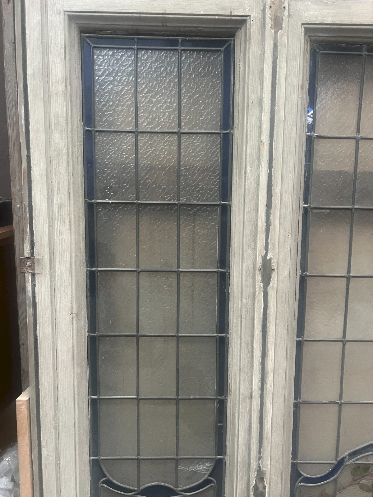 Fenêtre a trois vantaux en vitrail Art Nouveau Motif a décor de feuillages et de fleurs  Deux verres blancs fêlés voir les photos Bas de fenêtre partie extérieure abimés voir les photos Dimension  H 254 x L 178 x 5 cm XX siècle  vers 1900 Type:Vitrail Période:Art Déco Pays d'origine:France Hauteur:254 Style:Antiquité Longueur:278 Largeur:5