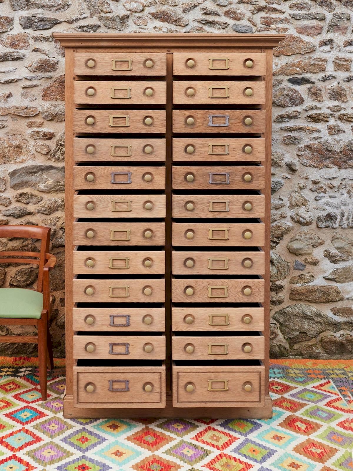 Découvrez ce grand meuble de métier issu de la faculté de médecine de Paris, doté de 24 tiroirs aux proportions étudiées pour un rangement modulable. Deux tiroirs sont plus profonds et un tiroir est compartimenté en 20 cases offrent une organisation précise petits objets, instruments ou collections, tandis que les doubles poignées et les portes étiquettes affirment sa vocation utilitaire. L'assemblage soigné et l'ébénisterie de qualité lui confèrent une allure intemporelle, idéale pour un bureau, un atelier ou une entrée. Longueur : 106 cm Largeur : 69 cm Hauteur : 176 cm Dimensions des tiroirs : Longueur : 41 cm Largeur : 55 cm Hauteur : 8 cm État:Occasion: Objet ayant été utilisé. Objet présentant quelques marques d'usure superficielle, ...Occasion: Objet ayant été utilisé. Objet présentant quelques marques d'usure superficielle, entièrement opérationnel et fonctionnant correctement. Il peut s'agir d'un modèle de démonstration ou d'un objet retourné en magasin après une courte période d'utilisation. les éventuelles imperfections. Marque:Debongout Type:Produit chiné Matériau:Bois Style:Campagne Personnalisé:Meubles de métier