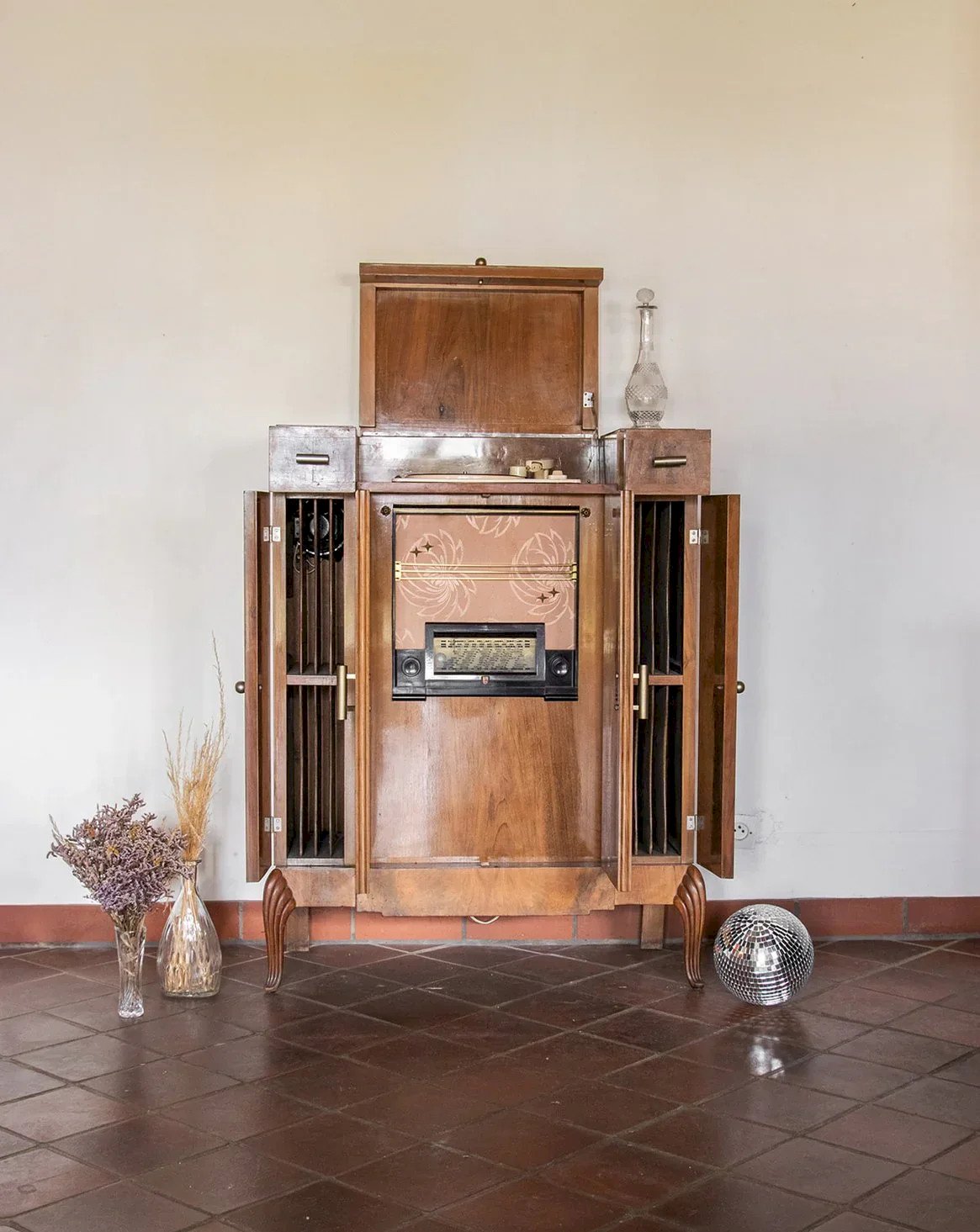Découvrez ce magnifique meuble à musique en bois, orné d'une délicate marqueterie qui apportera une touche d'élégance à votre intérieur. Avec ses amplis et sa platine vintage, ainsi que ses quatre espaces de rangement pour vos vinyles, cet objet au charme rétro est idéal pour les mélomanes. Doté de poignées métalliques et de deux tiroirs pratiques, ce meuble nécessite une restauration pour retrouver toute sa fonctionnalité et être pleinement utilisable au quotidien. Longueur : 85 cm Largeur : 45 cm Hauteur : 116,5 cm Hauteur tiroir : 8 cm État:Occasion: Objet ayant été utilisé. Objet présentant quelques marques d'usure superficielle, ...Occasion: Objet ayant été utilisé. Objet présentant quelques marques d'usure superficielle, entièrement opérationnel et fonctionnant correctement. Il peut s'agir d'un modèle de démonstration ou d'un objet retourné en magasin après une courte période d'utilisation. les éventuelles imperfections. Marque:Debongout Type:Produit chiné Matériau:Bois Style:Campagne Personnalisé:Meubles de métier