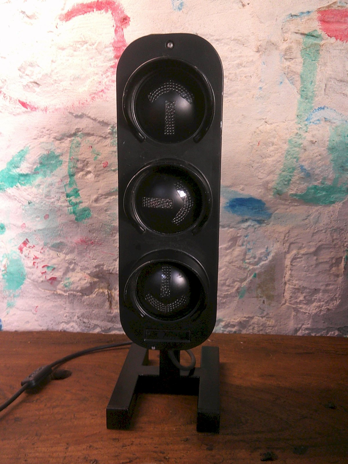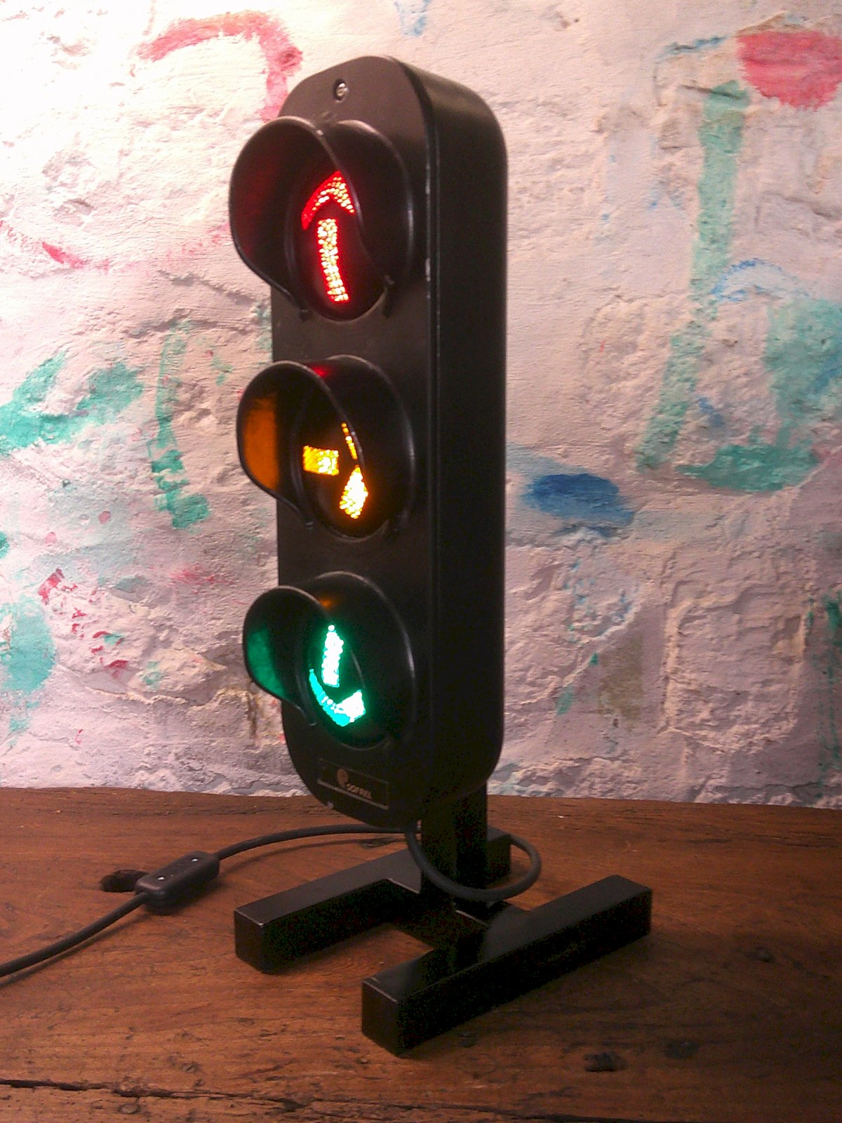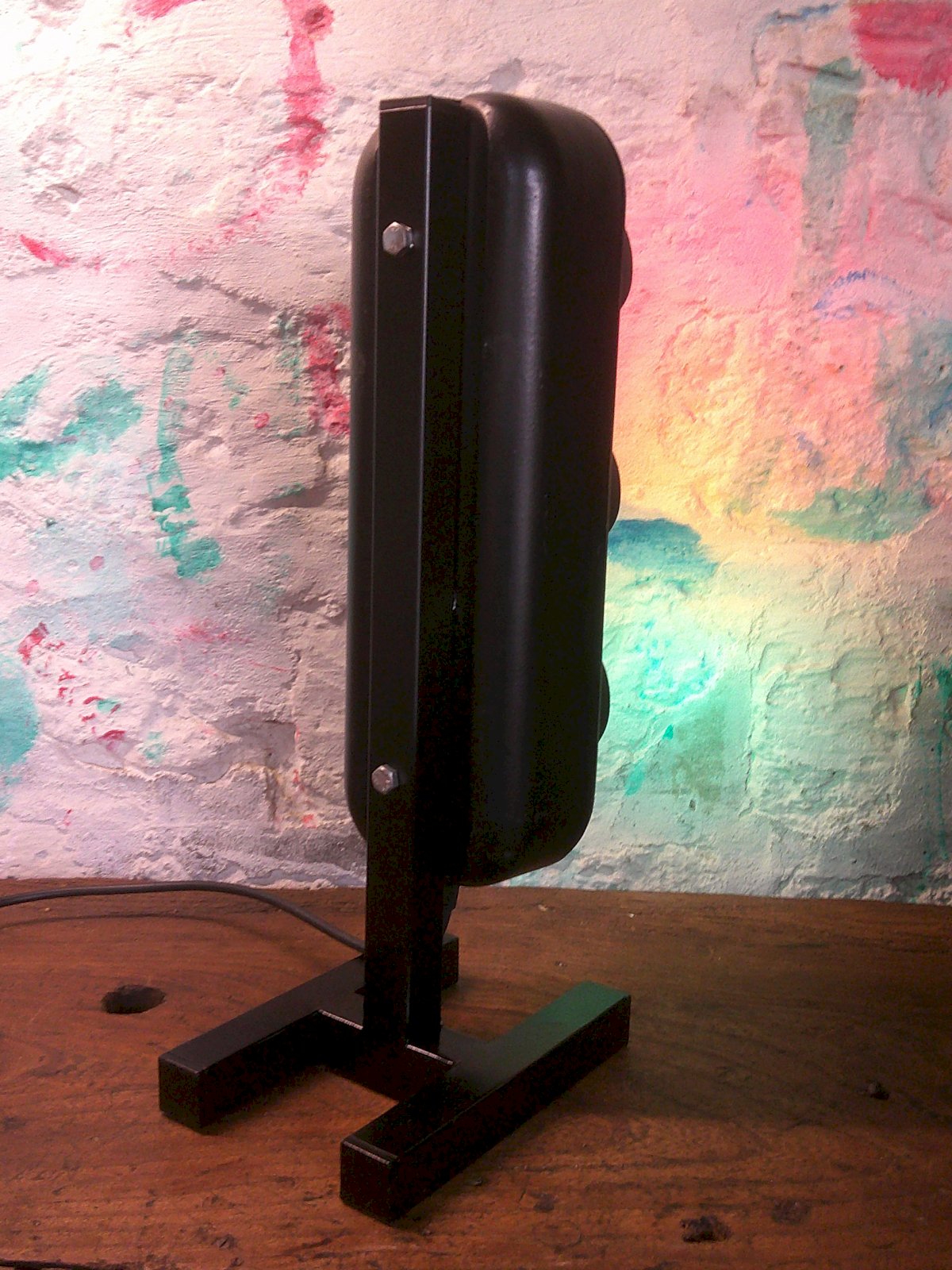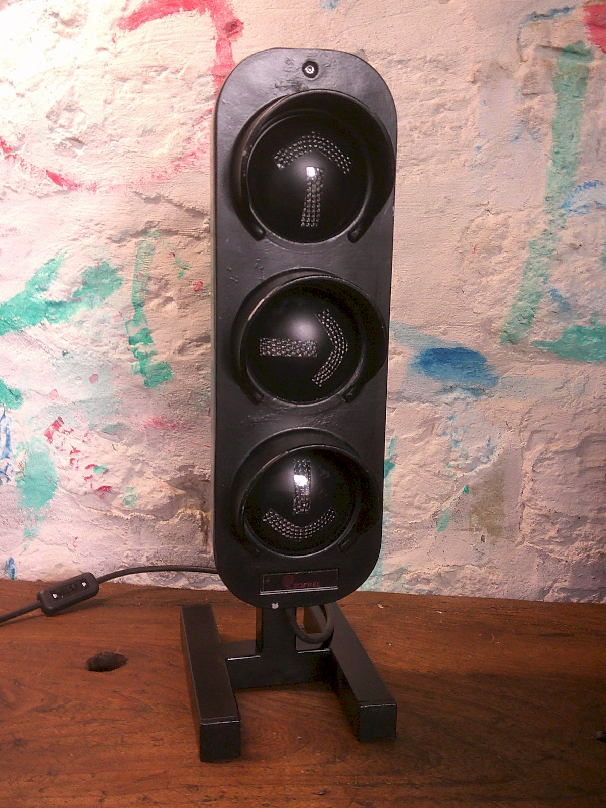 Feu tricolore directionnel en fonte d'aluminium " SOFREL " détourné en lampe a poser .