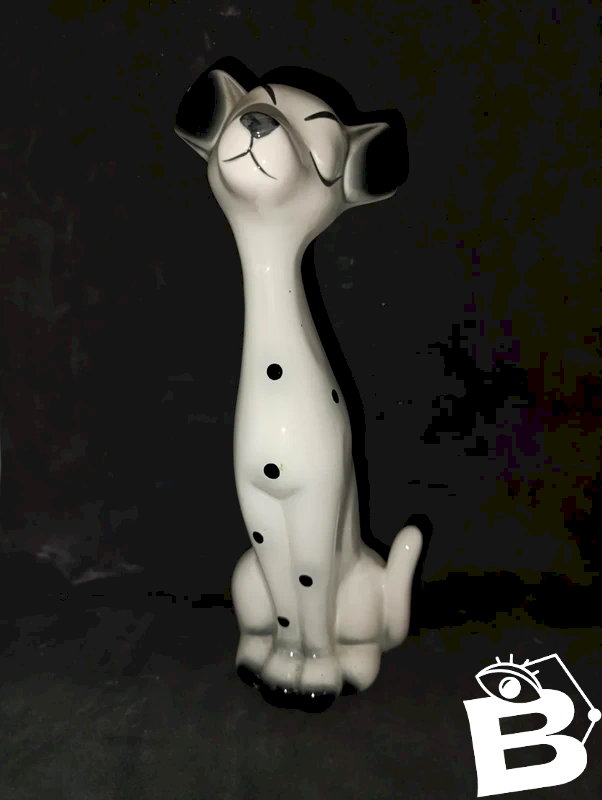 figurine en ceramique en forme de dalmatien en bon etat juste une mini egrenure à une oreille hauteur 29cm tres deco annee 70-80...