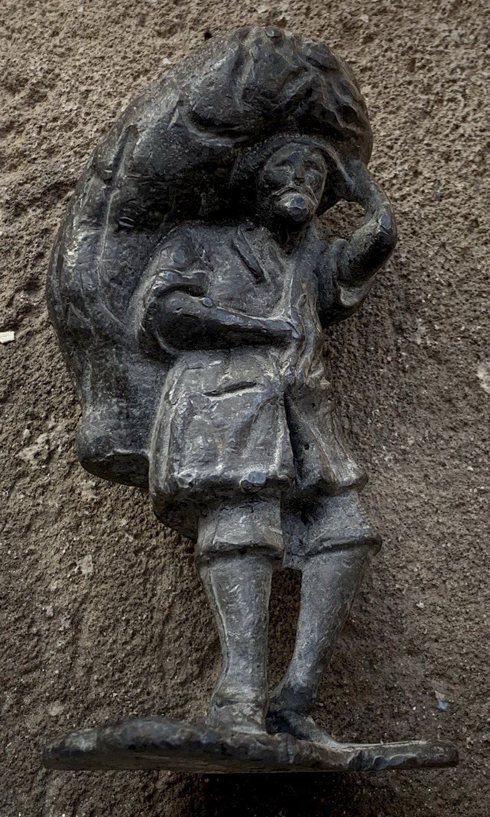figurine statuette personnage en plomb XVIIIe paysan au labeur scène de portage