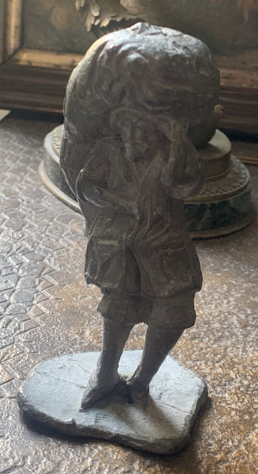 Figurine en plomb Scène paysanne, paysan portant une charge Période XVIIIe Bel état d'usage Poids:1110gr Hauteur:12,5cm Largeur maxi:5,5cm Authenticité:Original Type:Objet de vitrine, Décoratif Origine:France Sous-type:Figurine, Statue Style:Renaissance Matière:Plomb