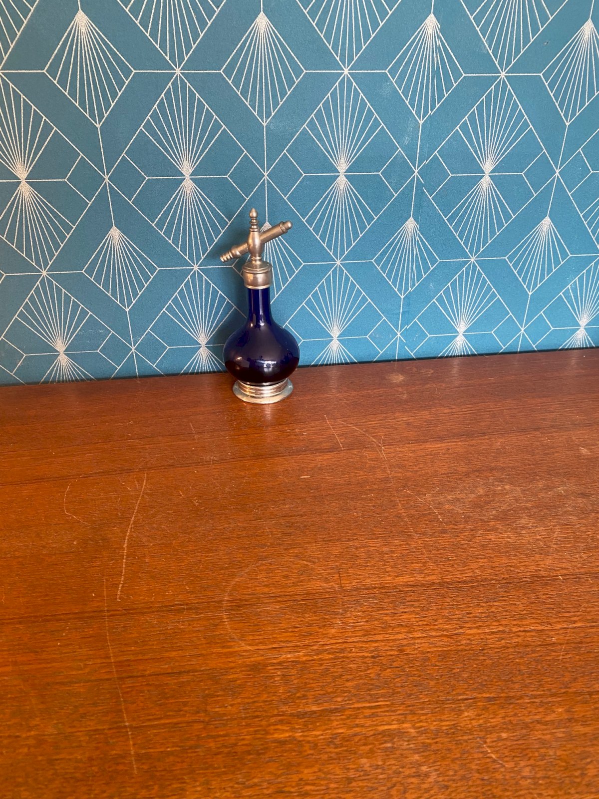 Flacon de parfum ancien, vaporisateur, époque art déco, signé , et daté de 1927. Bleu