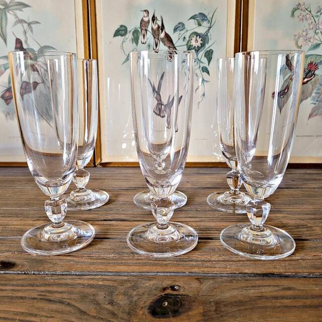 Flûtes à champagne vintage en cristal, jambe basse Transparent Verre