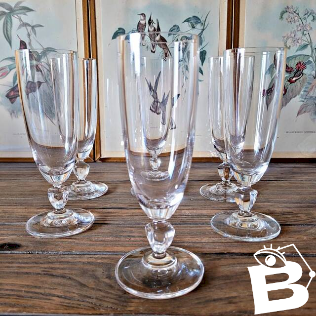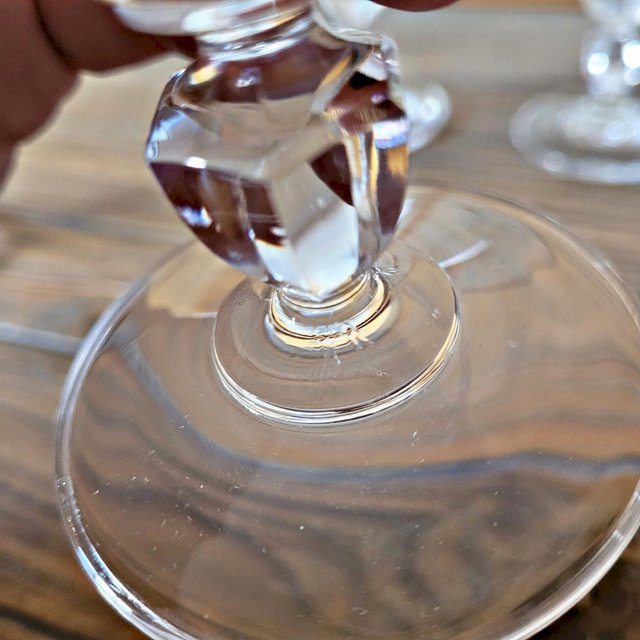 8 verres à vin ou eau vintage en cristal, jambe travaillée