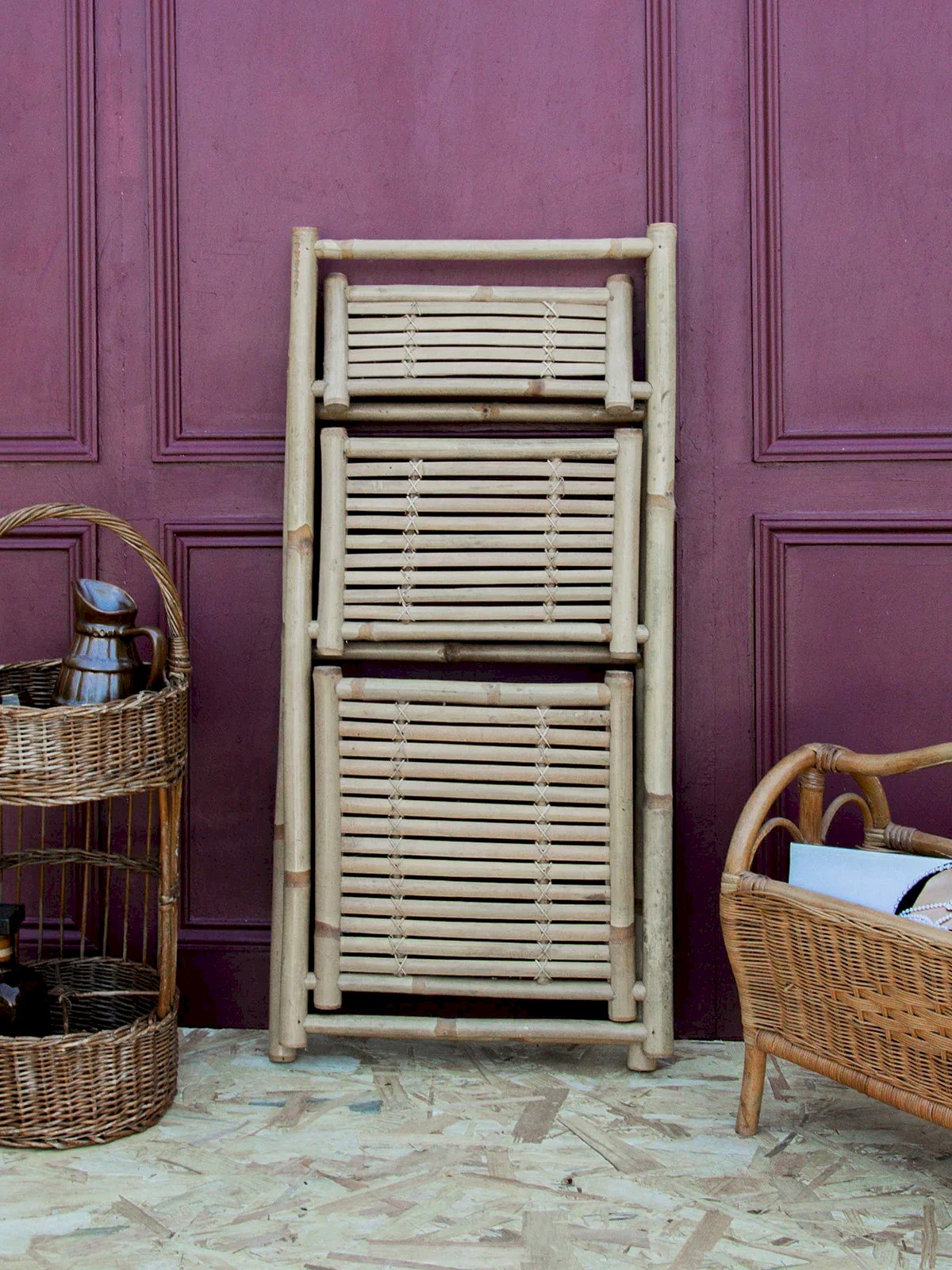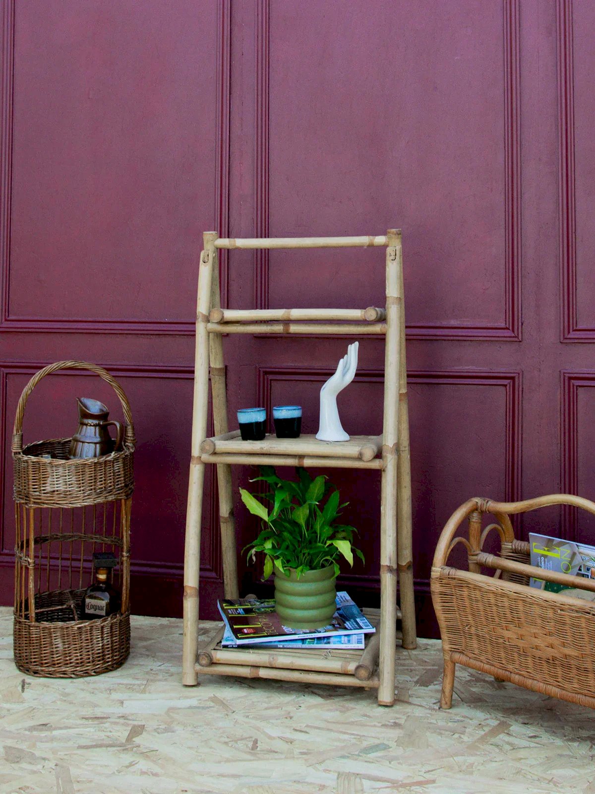 Découvrez notre élégante étagère en bambou pliant à 3 étages, parfaite alliance de praticité et d’esthétique. Ses jolies finitions et son design épuré lui permettent de s’intégrer naturellement dans tous les intérieurs, du plus classique au plus contemporain. Quelques marques du temps viennent souligner son caractère unique et lui donnent une âme chaleureuse. Idéale pour accueillir livres, plantes ou objets décoratifs, cette pièce apportera une touche naturelle et authentique à votre espace de vie. Longueur : 42 cm Hauteur : 90 cm Profondeur : 37 - 20 - 13,5 cm Hauteur de la niche : 37 - 23 cm État:Occasion: Objet ayant été utilisé. Objet présentant quelques marques d'usure superficielle, ...Occasion: Objet ayant été utilisé. Objet présentant quelques marques d'usure superficielle, entièrement opérationnel et fonctionnant correctement. Il peut s'agir d'un modèle de démonstration ou d'un objet retourné en magasin après une courte période d'utilisation. les éventuelles imperfections. Marque:Debongout Type:Produit chiné Matériau:Bambou Style:Campagne Personnalisé:Etagères
