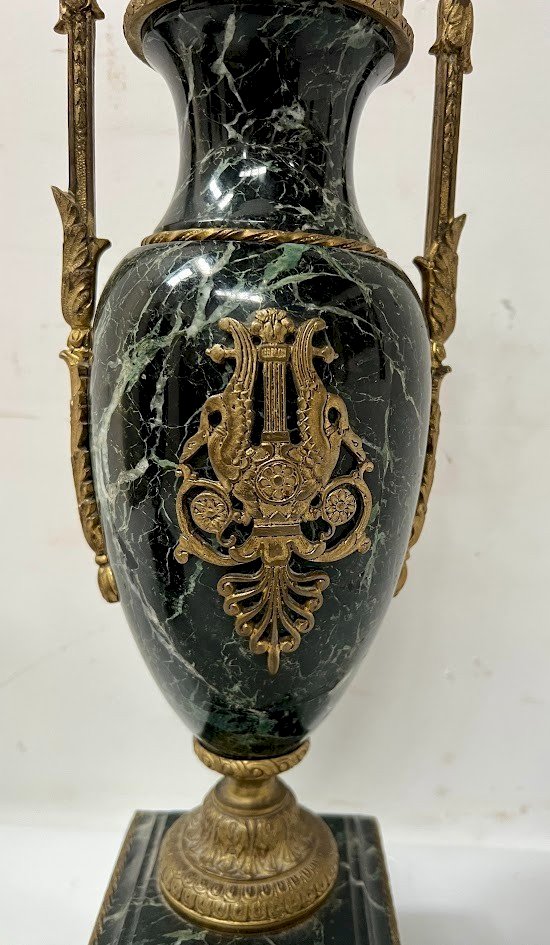 Garniture de cheminée de style Empire en marbre vert de mer XIX siècle