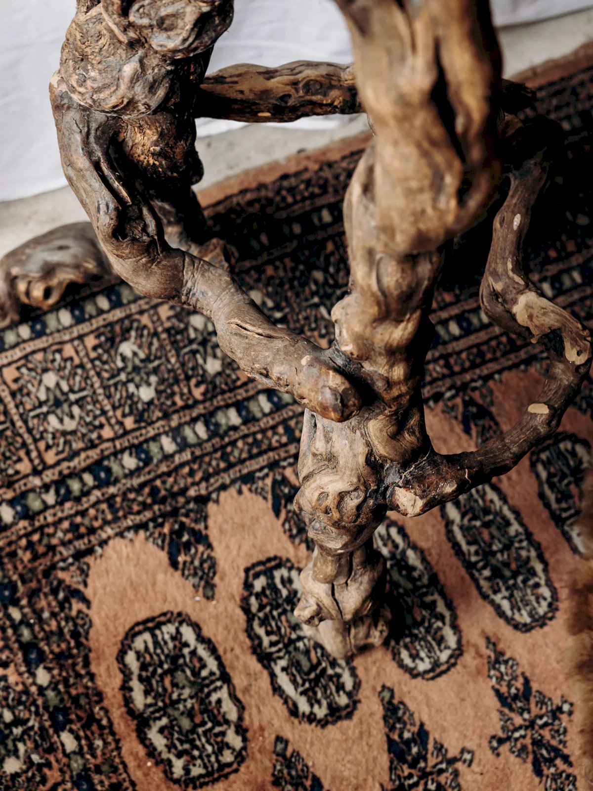 Invitez ce tabouret de bar au style brutaliste, où la robustesse se mêle à une élégance sobre. Ses pieds en bois de vigne lui donnent une assise à la fois stable et sculpturale, idéale pour un comptoir ou un îlot de cuisine. L'assise ronde et épaisse procure un confort généreux, pensé pour un usage quotidien, tandis que ses proportions ramènent une présence chaleureuse et artisanale à votre espace. Longueur : 46 cm Largeur : 46 cm Hauteur : 72 cm Diamètre de l'assise : 32 cm État:Occasion: Objet ayant été utilisé. Objet présentant quelques marques d'usure superficielle, ...Occasion: Objet ayant été utilisé. Objet présentant quelques marques d'usure superficielle, entièrement opérationnel et fonctionnant correctement. Il peut s'agir d'un modèle de démonstration ou d'un objet retourné en magasin après une courte période d'utilisation. les éventuelles imperfections. Couleur:Multicouleur Hauteur:Bois Largeur:Tabourets de bar Marque:Debongout Type:Produit chiné Matériau:Bois Style:Campagne