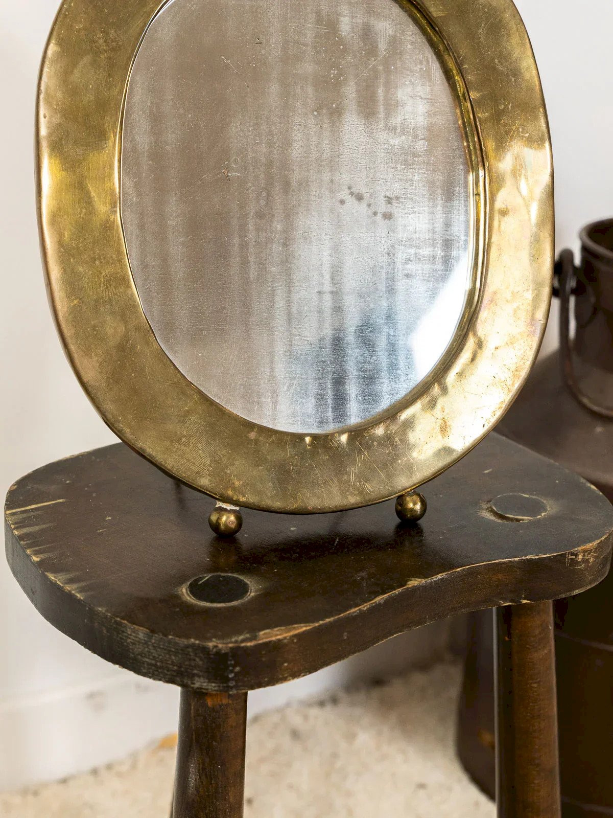 Ajoutez une touche d'élégance à votre intérieur avec ce miroir en métal au style art déco vintage. Son cadre finement travaillé, orné de motifs géométriques, reflète l'esthétique intemporelle de cette époque. Parfait pour illuminer un espace ou créer un point focal dans votre décoration, ce miroir allie sophistication et fonctionnalité, s'intégrant harmonieusement dans tout type d'intérieur. Un incontournable pour les amoureux du design rétro et raffiné. Largeur : 33 cm Hauteur : 27,5 cm État:Occasion: Objet ayant été utilisé. Objet présentant quelques marques d'usure superficielle, ...Occasion: Objet ayant été utilisé. Objet présentant quelques marques d'usure superficielle, entièrement opérationnel et fonctionnant correctement. Il peut s'agir d'un modèle de démonstration ou d'un objet retourné en magasin après une courte période d'utilisation. les éventuelles imperfections. Marque:Debongout Type:Produit chiné Matériau:Métal Style:Campagne