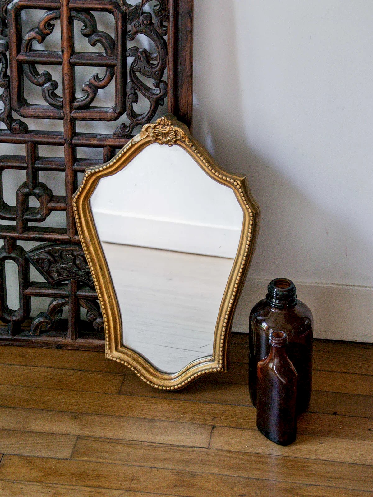 Découvrez ce miroir baroque au cadre en bois doré, qui apportera une touche classique et raffinée à votre intérieur. Son encadrement travaillé évoque le charme des intérieurs anciens. Il est équipé d'une chaîne à l'arrière pour une accroche simple et rapide. Quelques marques du temps lui donnent encore plus de caractère. Une pièce décorative à la fois pratique et pleine d’élégance. Longueur : 31 cm Largeur : 3 cm Hauteur : 46 cm État:Occasion: Objet ayant été utilisé. Objet présentant quelques marques d'usure superficielle, ...Occasion: Objet ayant été utilisé. Objet présentant quelques marques d'usure superficielle, entièrement opérationnel et fonctionnant correctement. Il peut s'agir d'un modèle de démonstration ou d'un objet retourné en magasin après une courte période d'utilisation. les éventuelles imperfections. Marque:Debongout Type:Produit chiné Matériau:Bois, Verre Style:Campagne