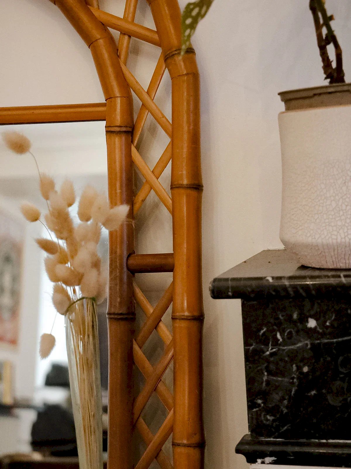 Découvrez ce miroir en bambou au cadre délicat et aux proportions élancées, qui apporte une touche naturelle et chaleureuse à vos pièces. Son format portrait s'installe aisément dans une entrée, une chambre ou au-dessus d'une coiffeuse, réfléchissant la lumière pour agrandir subtilement l'espace. Le travail du bambou apporte une note artisanale et sobre, idéale pour une décoration inspirante et apaisée. En très bon état. Longueur : 54 cm Largeur : 4 cm Hauteur : 76 cm État:Occasion: Objet ayant été utilisé. Objet présentant quelques marques d'usure superficielle, ...Occasion: Objet ayant été utilisé. Objet présentant quelques marques d'usure superficielle, entièrement opérationnel et fonctionnant correctement. Il peut s'agir d'un modèle de démonstration ou d'un objet retourné en magasin après une courte période d'utilisation. les éventuelles imperfections. Marque:Debongout Type:Produit chiné Matériau:Bambou, Verre Style:Campagne