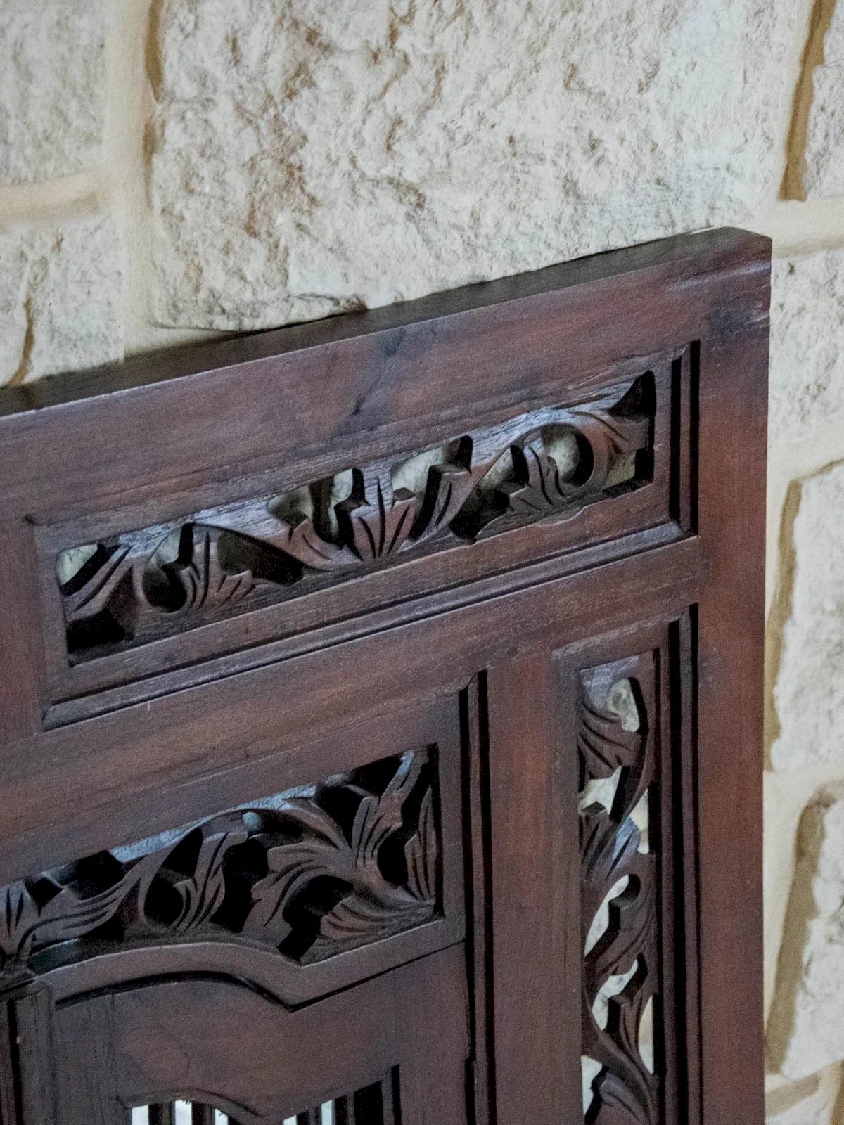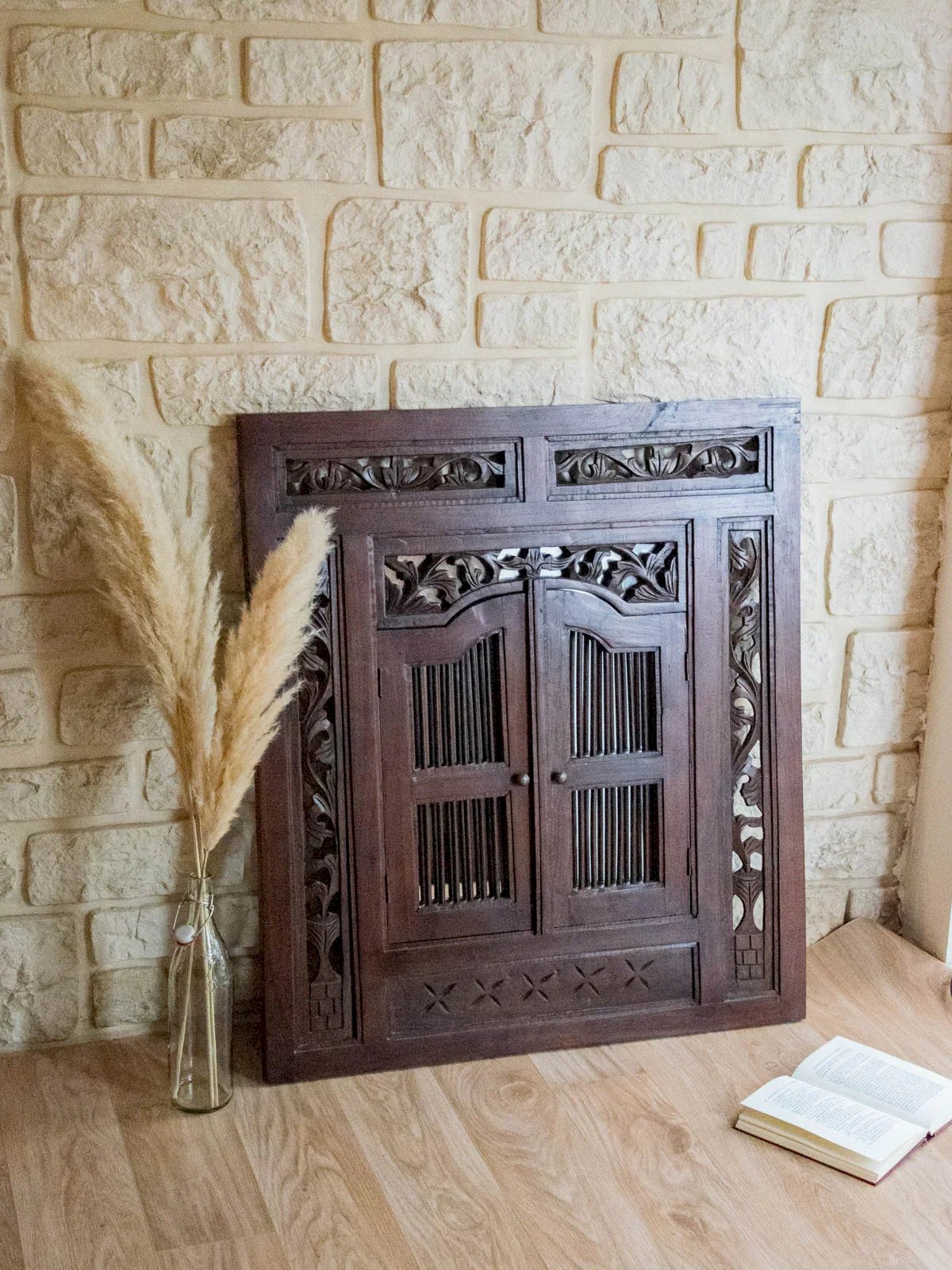 Sublimez votre intérieur avec ce grand miroir en bois foncé au style "effet fenêtre", qui apporte une présence architecturale et une profondeur lumineuse tout en évoquant une esthétique classique. Ses vantaux rabattables permettent de dissimuler complètement la surface réfléchissante, protégeant le verre et modulant la lumière selon l'ambiance désirée, tandis que les détails floraux sculptés soulignent le savoir‑faire artisanal. Idéal au‑dessus d'une console dans une entrée ou pour agrandir visuellement un salon ou une chambre. Longueur : 80 cm Hauteur : 90,5 cm Profondeur : 2,5 cm Hauteur du miroir : 48 cm Largeur du miroir : 45 cm État:Occasion: Objet ayant été utilisé. Objet présentant quelques marques d'usure superficielle, ...Occasion: Objet ayant été utilisé. Objet présentant quelques marques d'usure superficielle, entièrement opérationnel et fonctionnant correctement. Il peut s'agir d'un modèle de démonstration ou d'un objet retourné en magasin après une courte période d'utilisation. les éventuelles imperfections. Marque:Debongout Type:Produit chiné Matériau:Bois, Verre Style:Campagne