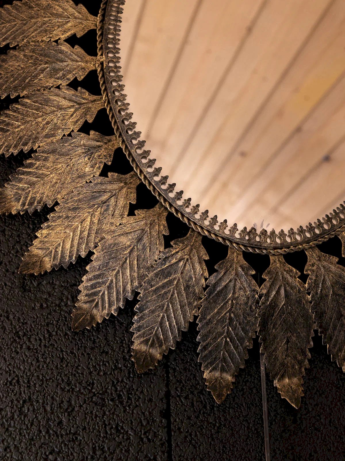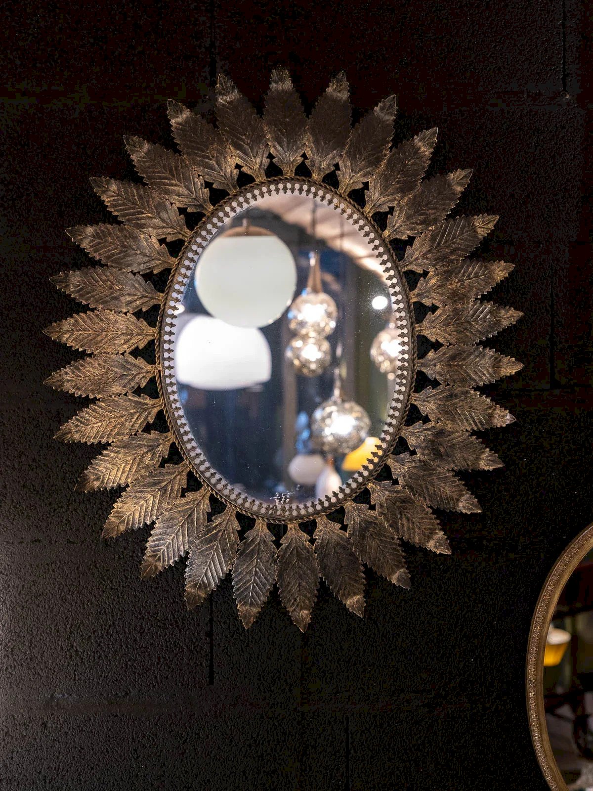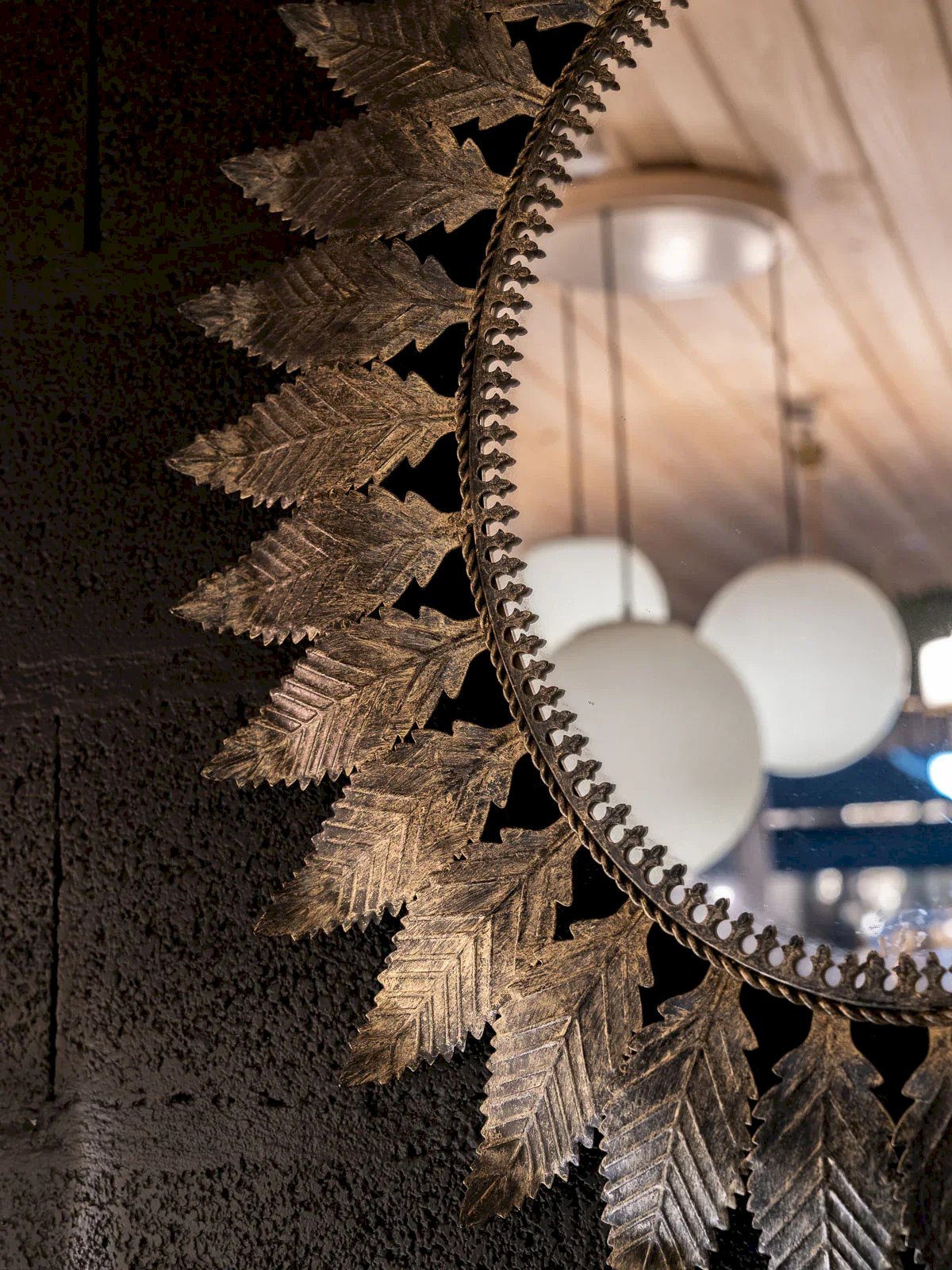 Apportez une touche vintage à votre intérieur avec ce miroir des années 70, magnifiquement orné de feuilles en métal vieilli au style floral.Il trouvera facilement sa place dans votre salon ou votre chambre. Son design unique et élégant reflète le charme de l'époque tout en s'intégrant harmonieusement dans un décor contemporain. Un accessoire idéal pour sublimer votre espace tout en jouant avec la lumière. Largeur : 65 cm Hauteur : 80 cm État:Occasion: Objet ayant été utilisé. Objet présentant quelques marques d'usure superficielle, ...Occasion: Objet ayant été utilisé. Objet présentant quelques marques d'usure superficielle, entièrement opérationnel et fonctionnant correctement. Il peut s'agir d'un modèle de démonstration ou d'un objet retourné en magasin après une courte période d'utilisation. les éventuelles imperfections. Marque:Debongout Type:Produit chiné Matériau:Métal Style:Campagne