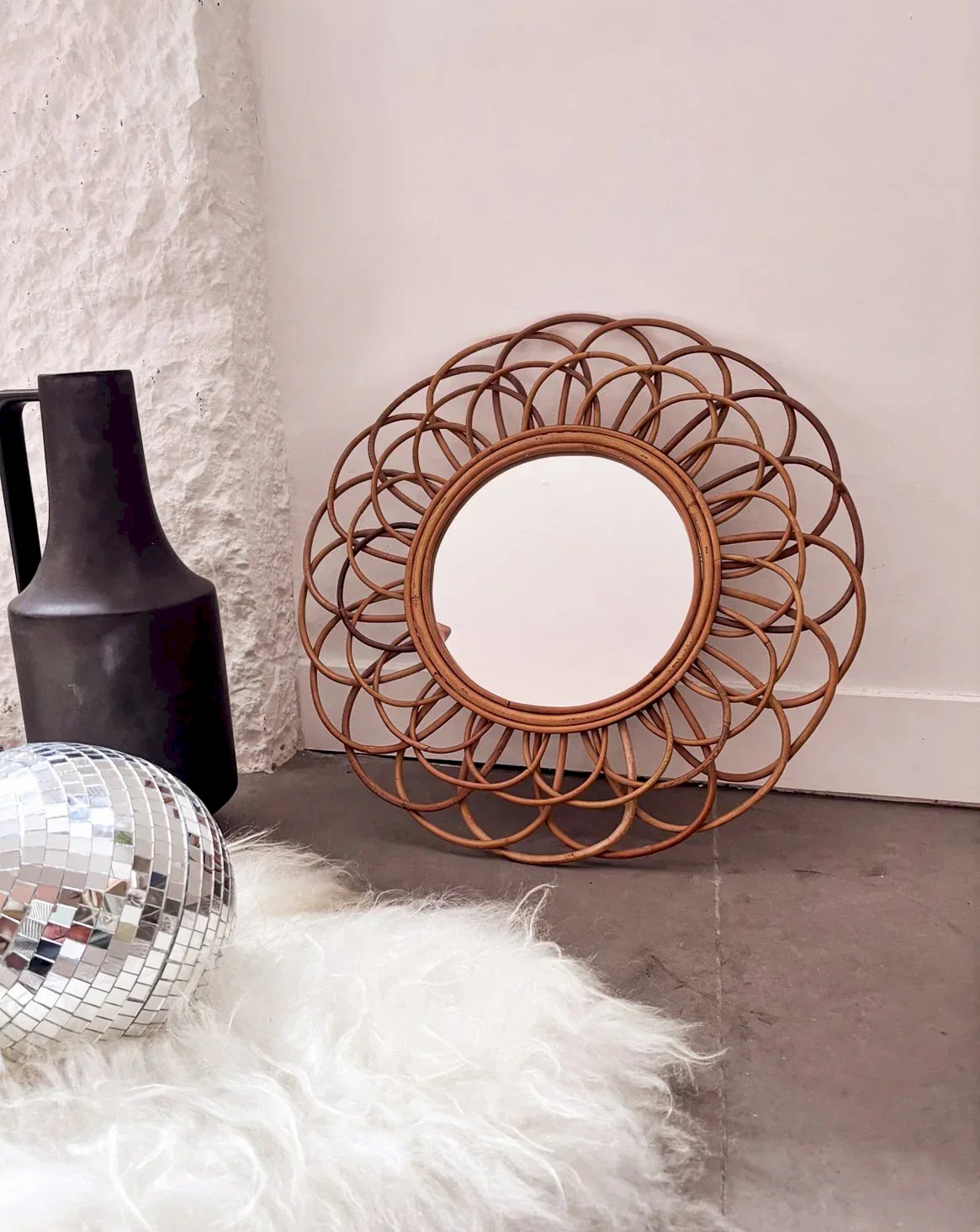 Ajoutez une touche rétro à votre décoration avec ce miroir soleil des années 70. Son design emblématique, orné de rayons dorés qui évoquent l’éclat du soleil, apportera une ambiance chaleureuse et lumineuse à n'importe quelle pièce. Parfait pour le salon ou la chambre, ce miroir est à la fois un élément de décoration unique et un accessoire pratique. Offrez-vous un peu de vintage et laissez-vous séduire par son charme intemporel. Diamètre : 52 cm Diamètre du miroir : 24 cm État:Occasion: Objet ayant été utilisé. Objet présentant quelques marques d'usure superficielle, ...Occasion: Objet ayant été utilisé. Objet présentant quelques marques d'usure superficielle, entièrement opérationnel et fonctionnant correctement. Il peut s'agir d'un modèle de démonstration ou d'un objet retourné en magasin après une courte période d'utilisation. les éventuelles imperfections. Marque:Debongout Type:Produit chiné Matériau:Métal Style:Campagne