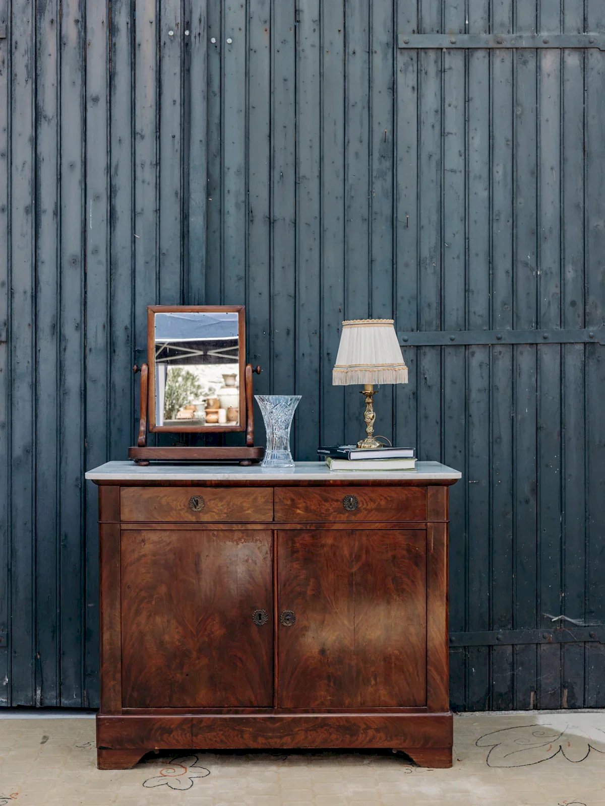 Craquez pour ce miroir psyché au design intemporel, parfait pour compléter une chambre ou un coin dressing. Son cadre en bois foncé lui confère une belle présence, tandis que son système pivotant permet de l’ajuster selon vos envies. À la fois décoratif et pratique, il s’intégrera facilement dans votre intérieur tout en ajoutant une note de charme. À noter : la vitre est légèrement piquée et l’arrière du miroir est cassé, sans que cela ne gêne son utilisation. Longueur : 46 cm Hauteur : 54,5 cm Profondeur : 20,5 cm État:Occasion: Objet ayant été utilisé. Objet présentant quelques marques d'usure superficielle, ...Occasion: Objet ayant été utilisé. Objet présentant quelques marques d'usure superficielle, entièrement opérationnel et fonctionnant correctement. Il peut s'agir d'un modèle de démonstration ou d'un objet retourné en magasin après une courte période d'utilisation. les éventuelles imperfections. Marque:Debongout Type:Produit chiné Matériau:Verre, Bois Style:Campagne