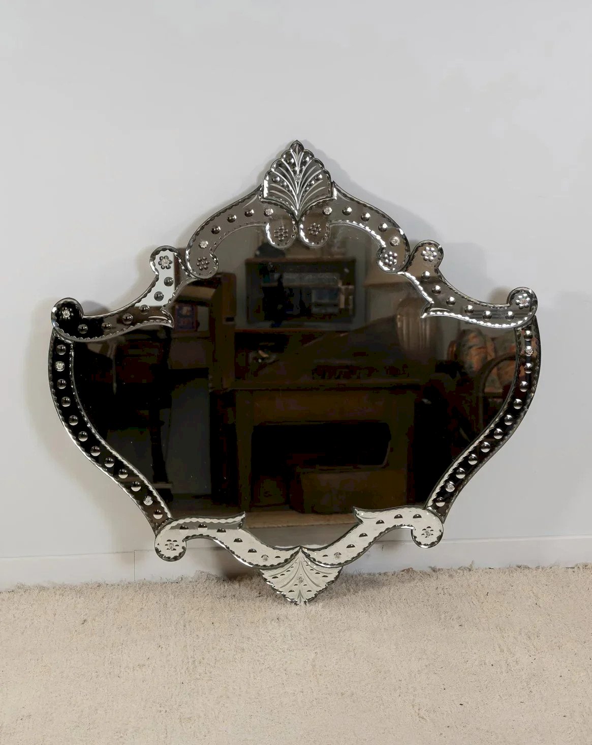Découvrez notre élégant miroir vénitien aux belles formes, une pièce maîtresse qui marie à la perfection sophistication et charme. Avec ses contours délicatement sculptés et son verre finement travaillé, ce miroir apporte une touche d'authenticité à votre décoration intérieure. Idéal pour sublimer un hall d'entrée ou un salon, il reflète la lumière tout en créant une atmosphère chaleureuse et accueillante. Un véritable reflet du raffinement à la française. Longueur : 94 cm Largeur : 89 cm État:Occasion: Objet ayant été utilisé. Objet présentant quelques marques d'usure superficielle, ...Occasion: Objet ayant été utilisé. Objet présentant quelques marques d'usure superficielle, entièrement opérationnel et fonctionnant correctement. Il peut s'agir d'un modèle de démonstration ou d'un objet retourné en magasin après une courte période d'utilisation. les éventuelles imperfections. Marque:Debongout Type:Produit chiné Matériau:Verre Style:Campagne