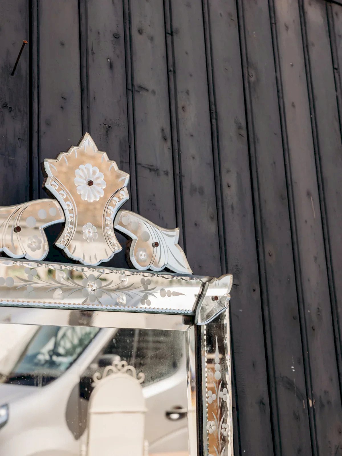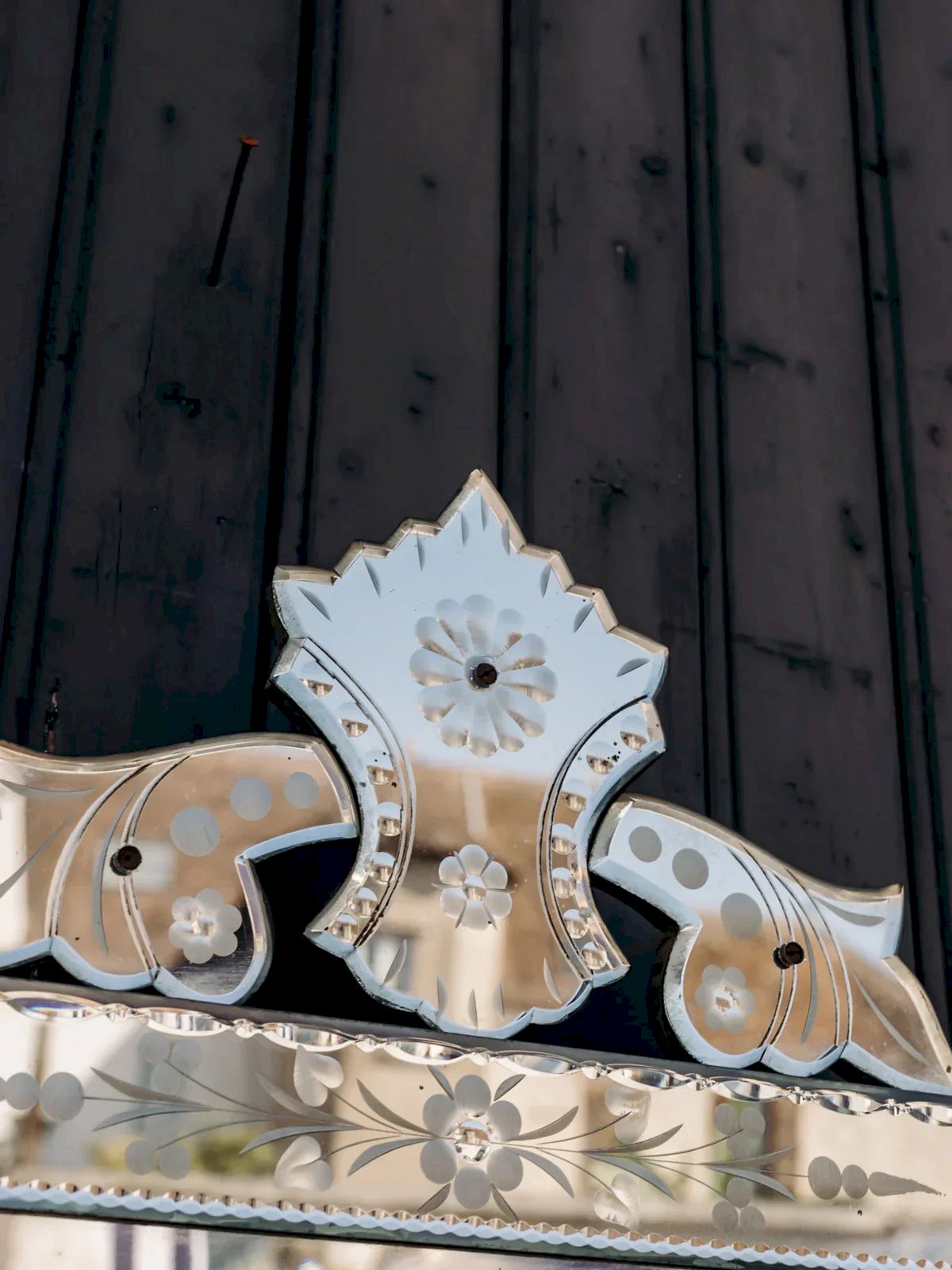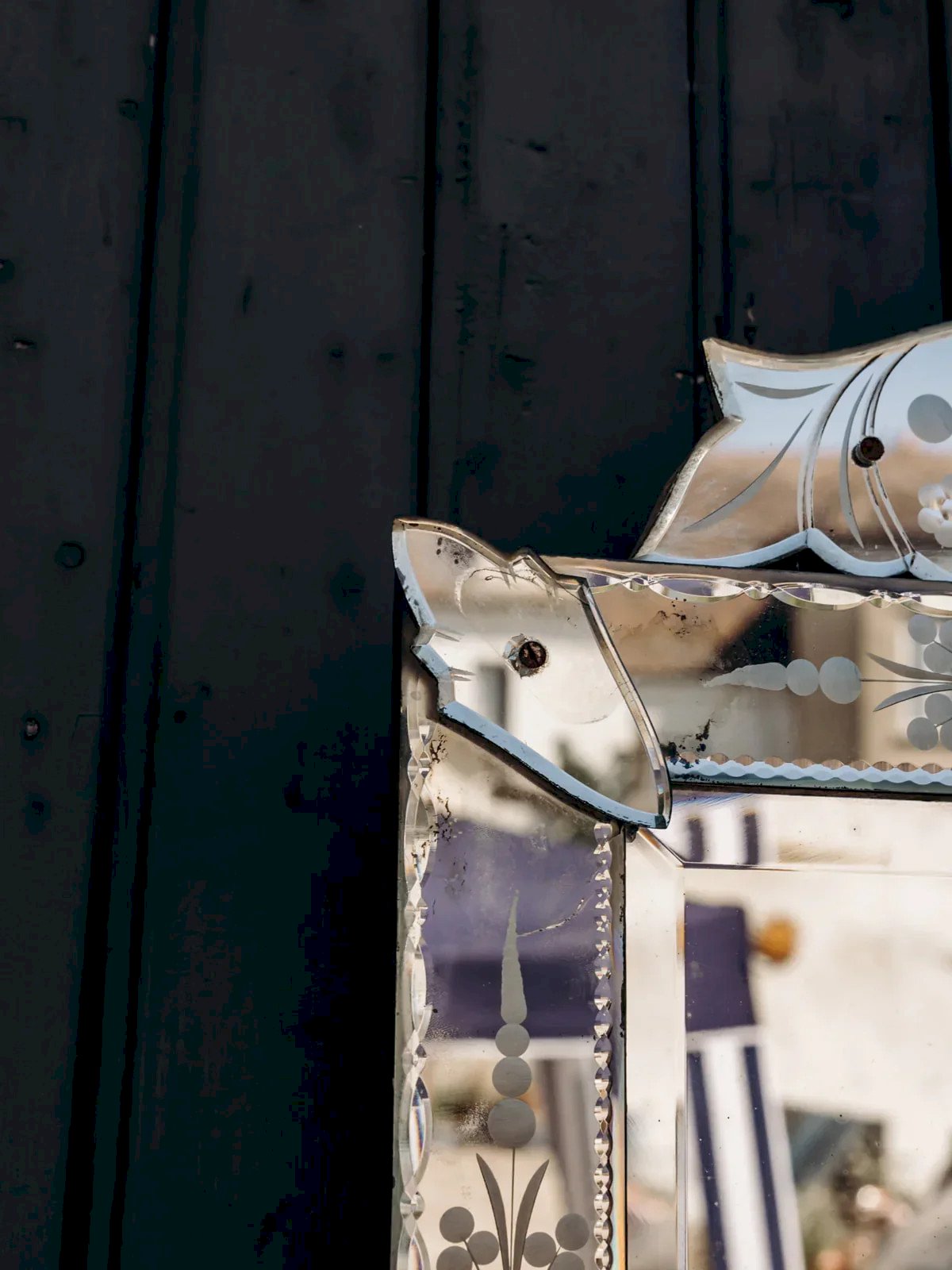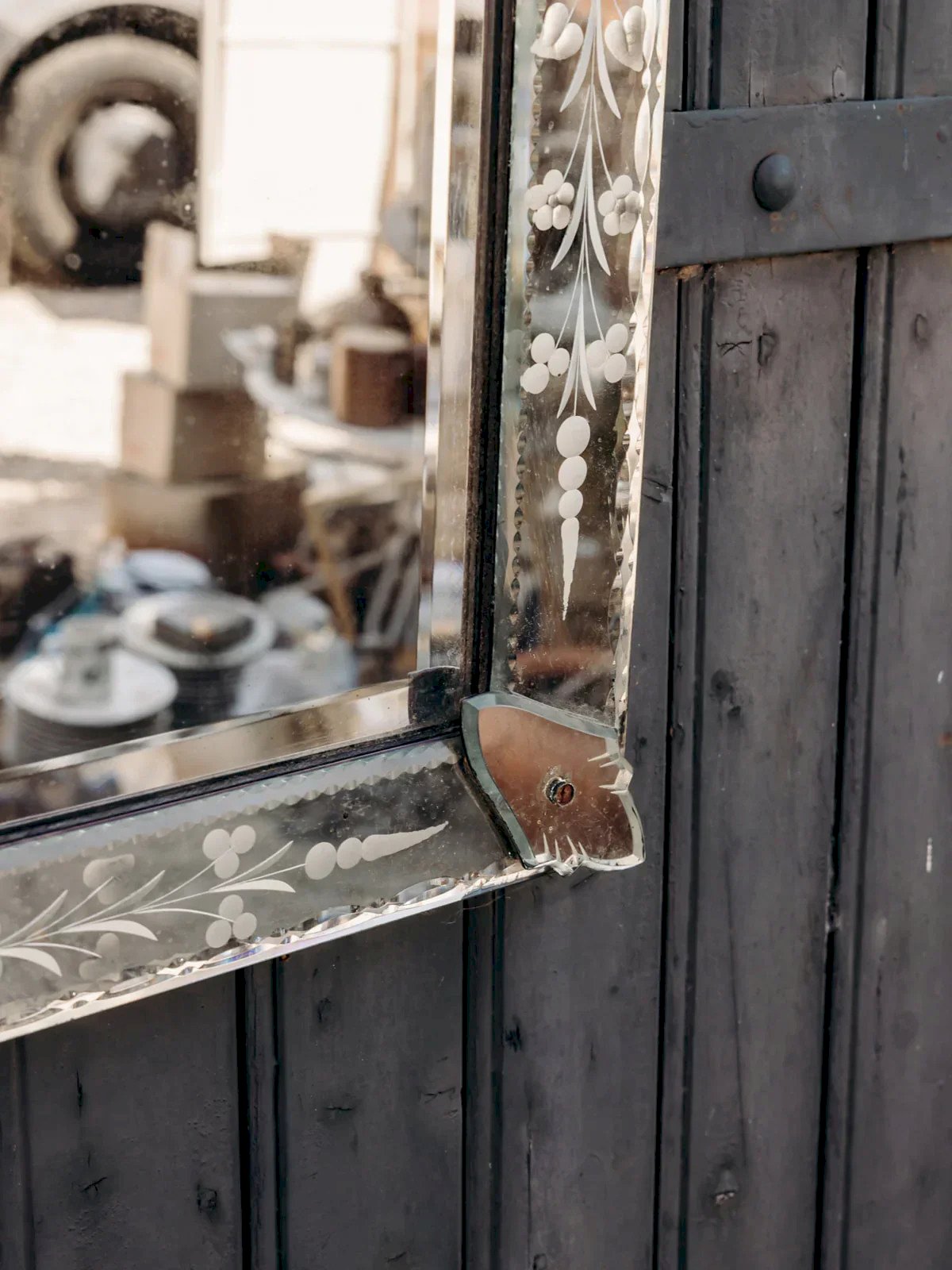 Découvrez ce magnifique miroir vénitien orné de jolies gravures délicates sur sa surface. Son charme authentique est renforcé par quelques petits éclats et un léger piqué, témoignant de son histoire. Idéal pour apporter une touche élégante et vintage à votre intérieur. Une pièce décorative unique qui sublime chaque pièce. Parfait pour les amateurs de meubles anciens avec du caractère. Longueur : 49,5 cm Largeur : 2 cm Hauteur : 84 cm État:Occasion: Objet ayant été utilisé. Objet présentant quelques marques d'usure superficielle, ...Occasion: Objet ayant été utilisé. Objet présentant quelques marques d'usure superficielle, entièrement opérationnel et fonctionnant correctement. Il peut s'agir d'un modèle de démonstration ou d'un objet retourné en magasin après une courte période d'utilisation. les éventuelles imperfections. Marque:Debongout Type:Produit chiné Matériau:Verre Style:Campagne