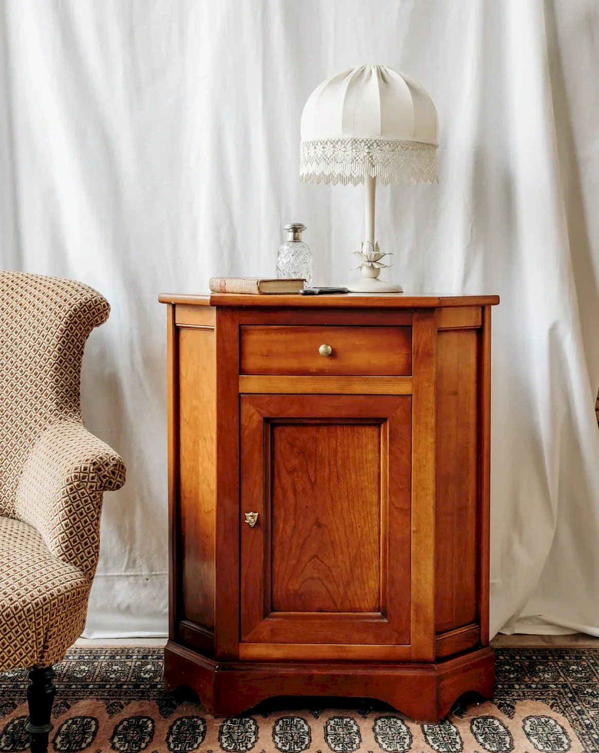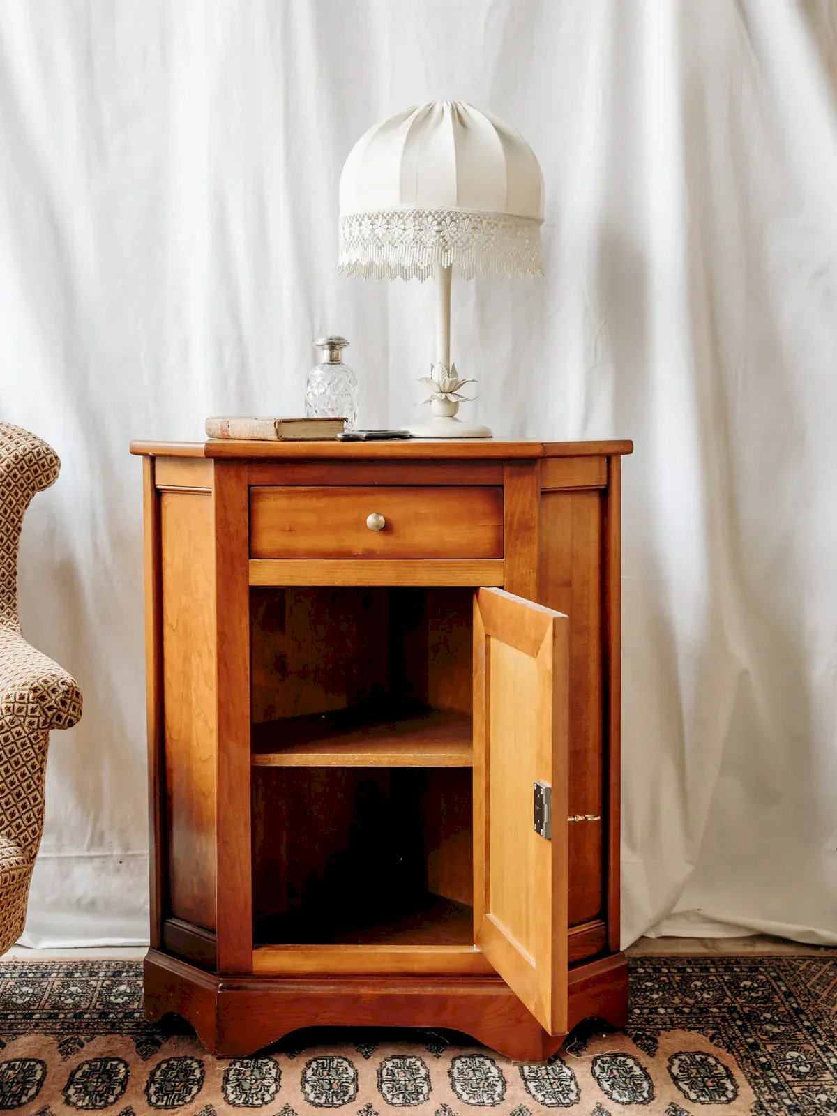 Découvrez ce charmant buffet d'angle en bois, idéal pour optimiser votre espace tout en ajoutant une touche d'élégance à votre intérieur. Doté d'un placard sécurisé par une clé et d'un tiroir pratique, il allie fonctionnalité et style. Ses détails dorés apportent une note sophistiquée, bien que quelques rayures sur le plateau témoignent de son caractère authentique. Parfait pour sublimer votre décoration tout en offrant un rangement astucieux. Largeur : 70 cm Hauteur : 84 cm Hauteur tiroir : 8,5 cm Profondeur : 47,5 cm État:Occasion: Objet ayant été utilisé. Objet présentant quelques marques d'usure superficielle, ...Occasion: Objet ayant été utilisé. Objet présentant quelques marques d'usure superficielle, entièrement opérationnel et fonctionnant correctement. Il peut s'agir d'un modèle de démonstration ou d'un objet retourné en magasin après une courte période d'utilisation. les éventuelles imperfections. Marque:Debongout Type:Produit chiné Matériau:Bois Style:Campagne Personnalisé:Buffets