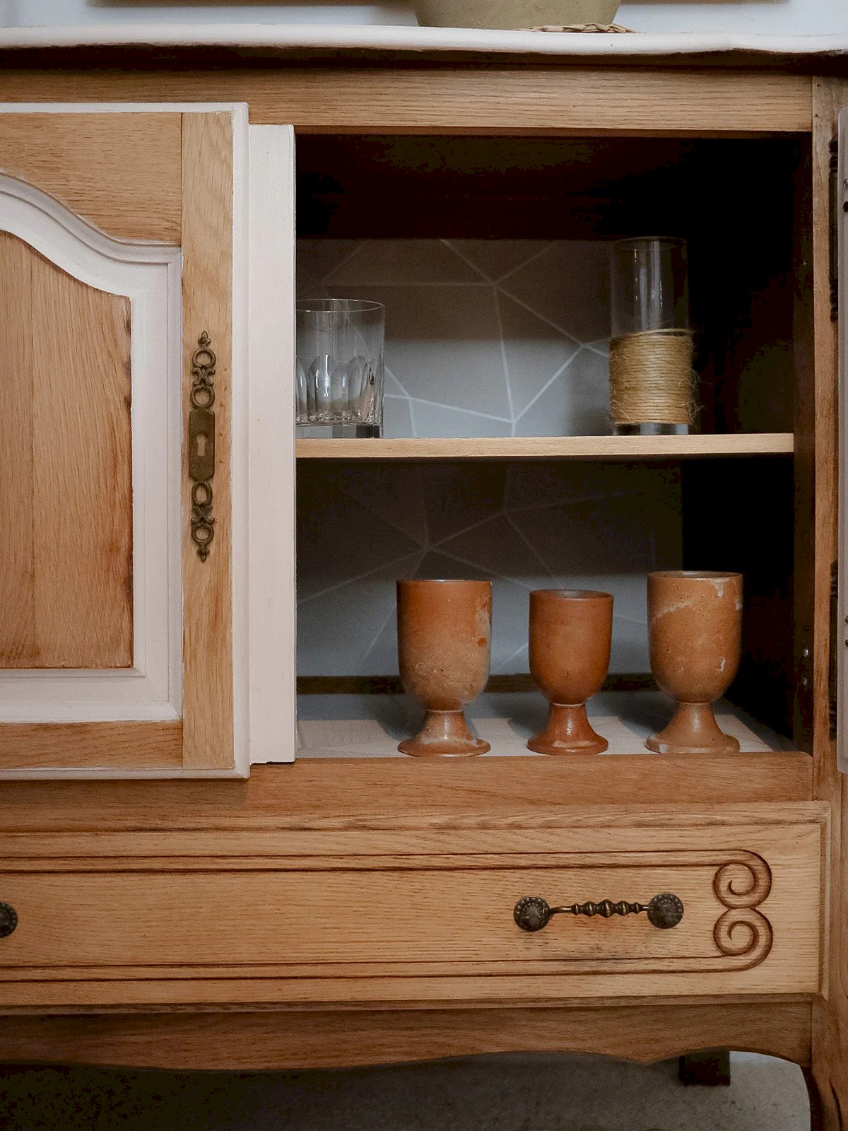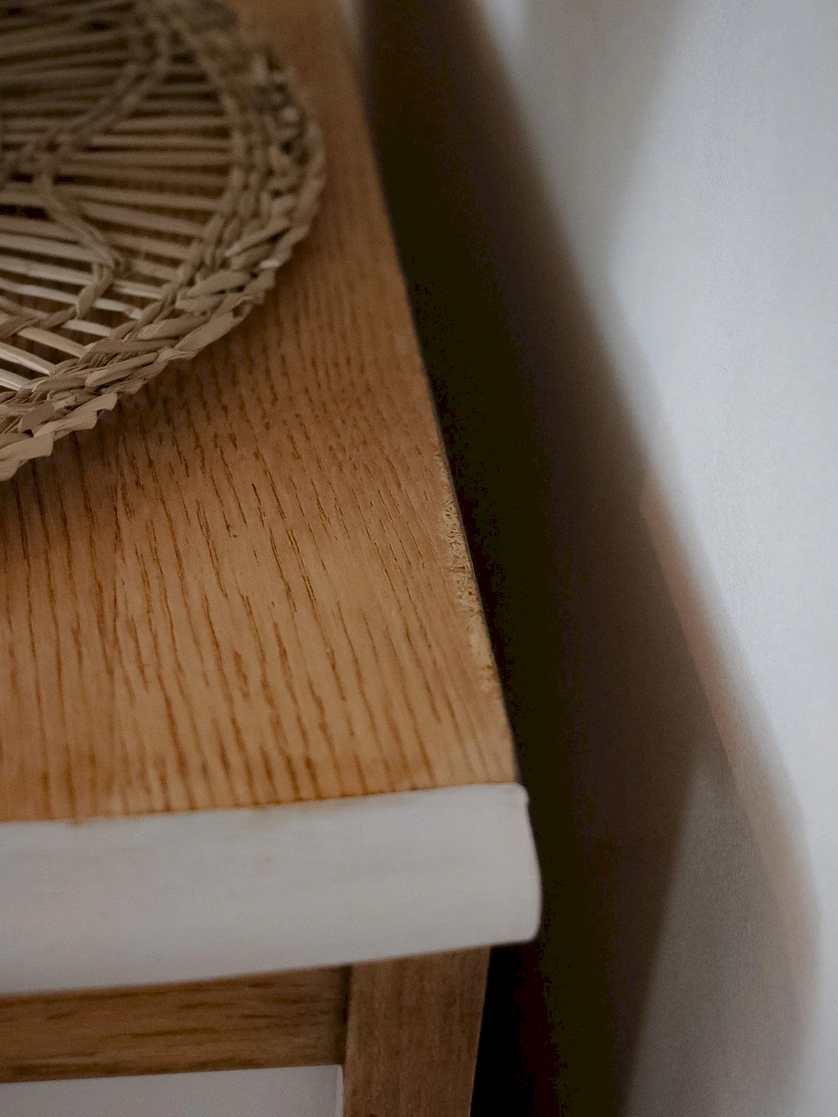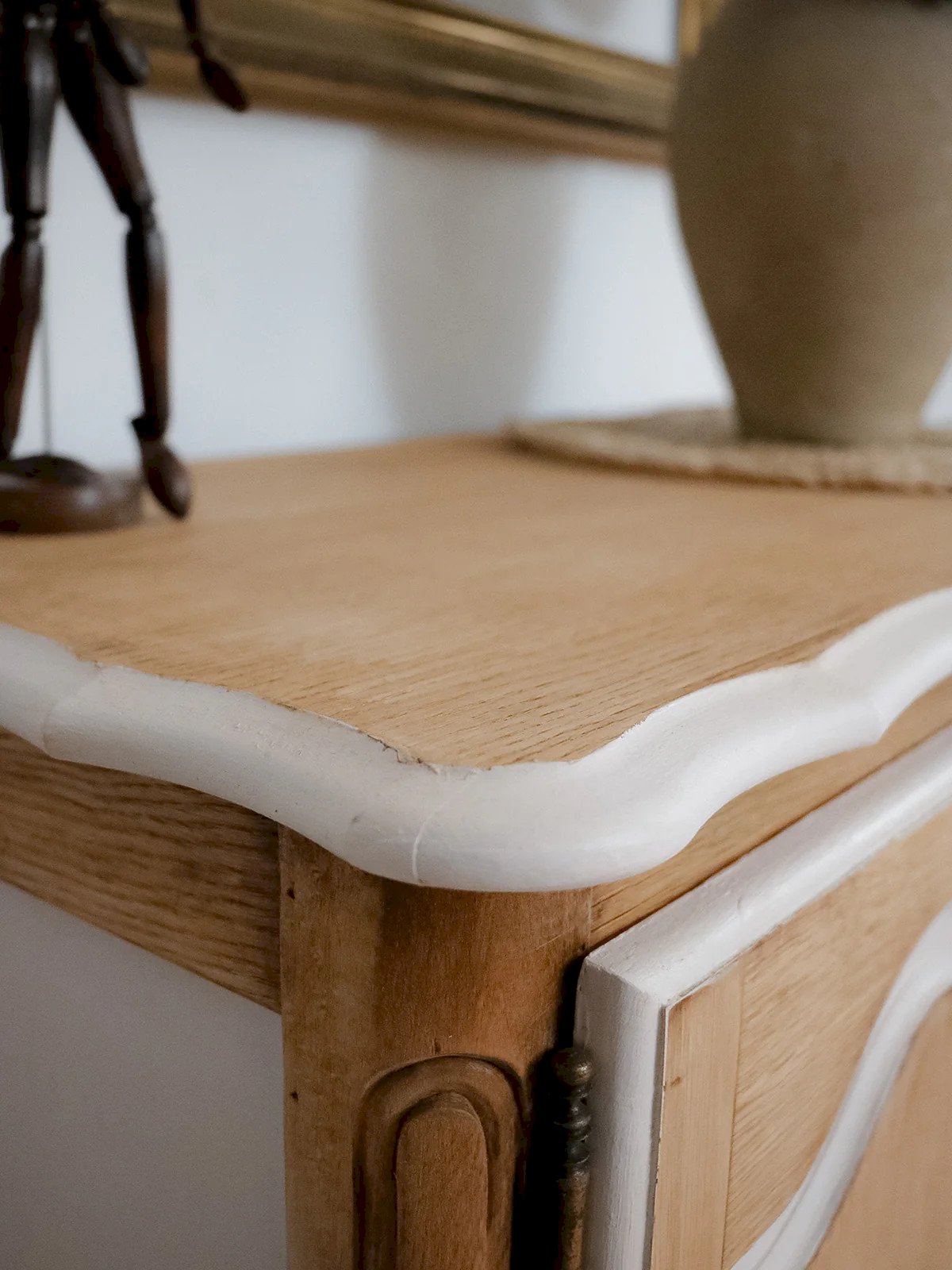 Apportez une touche vintage et lumineuse avec ce buffet des années 70/80 en chêne et plaquage, associé à une finition blanche et à de délicates moulures. Ses deux portes et son tiroir offrent un rangement modulable, idéal pour la vaisselle, le linge de table ou les objets du quotidien, et structureront un coin repas ou un salon. Le contraste du bois et du blanc installe une ambiance chaleureuse et élégante, subtilement rétro. Longueur : 83 cm Largeur : 43 cm Hauteur : 85,5 cm Hauteur tiroir : 12,5 cm Hauteur des étagères : 19 cm et 21,5 cm État:Occasion: Objet ayant été utilisé. Objet présentant quelques marques d'usure superficielle, ...Occasion: Objet ayant été utilisé. Objet présentant quelques marques d'usure superficielle, entièrement opérationnel et fonctionnant correctement. Il peut s'agir d'un modèle de démonstration ou d'un objet retourné en magasin après une courte période d'utilisation. les éventuelles imperfections. Marque:Debongout Type:Produit chiné Matériau:Chêne, Bois Style:Campagne Personnalisé:Buffets