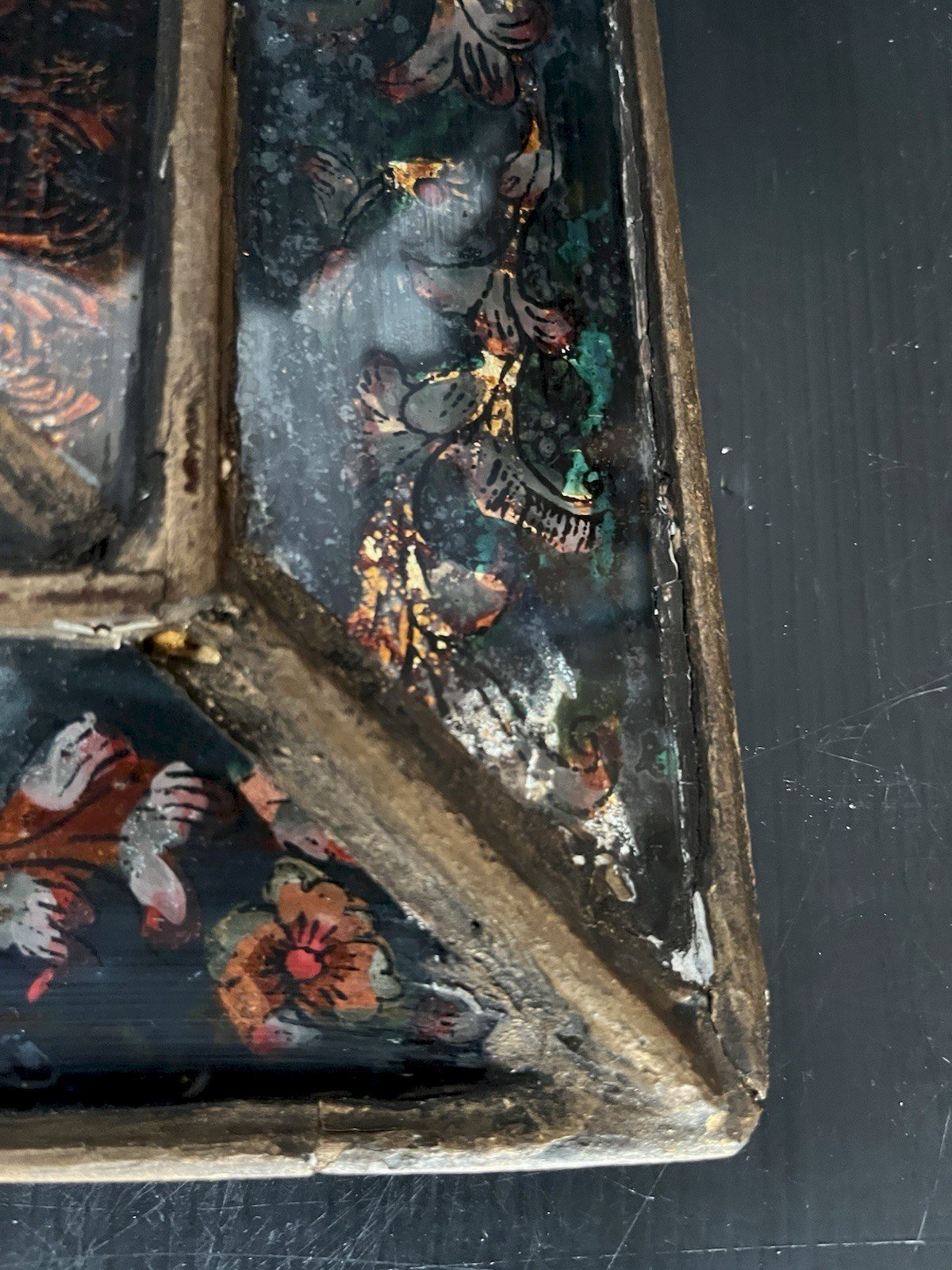 glace Miroir ancien biseauté en Verre Peint inverse facon Italien venitien