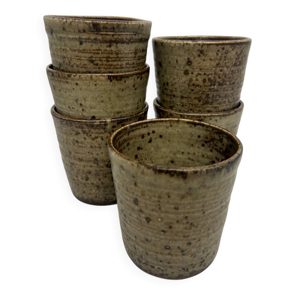 6 gobelets en grés signés LE CEP, années 70.Un éclat photographié.