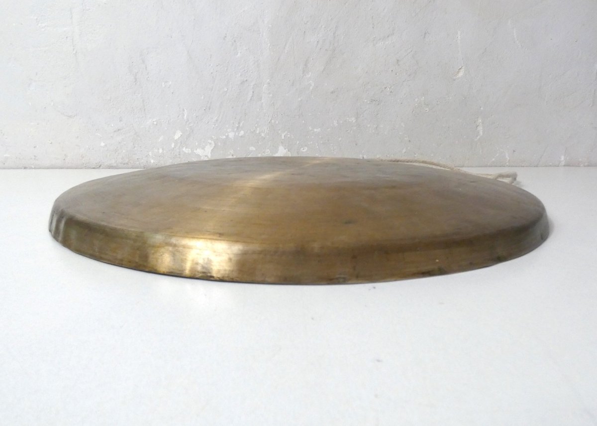 Gong en laiton martelé et signé Shuang Gua vintage instrument folk art