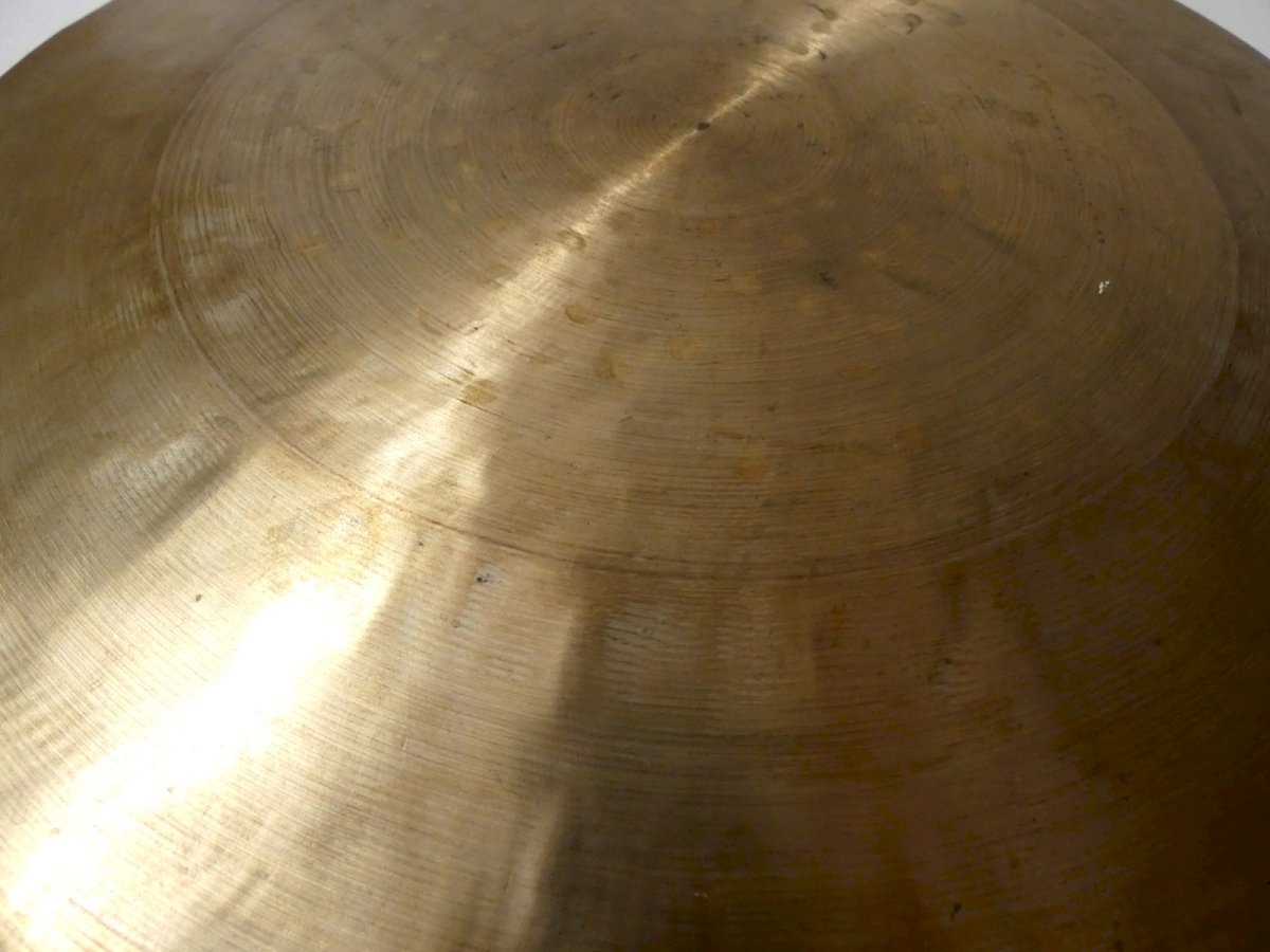 Superbe gong ancien, en laiton martelé à la main. Diamètre: 36 cm. Au revers figure une inscription en caractères chinois : 雙光鑼 (Shuang Guang Luo) , que l’on peut traduire par « Gong Shuang Guang » ou « Gong Double Éclat », marque traditionnelle d’atelier. Objet authentique et de fabrication artisanale, à la fois instrument de musique et pièce décorative , il produit un son ample et résonnant typique des gongs asiatiques. Idéal pour la musique, la méditation, les pratiques de yoga, ou comme élément décoratif mural. En excellent état.