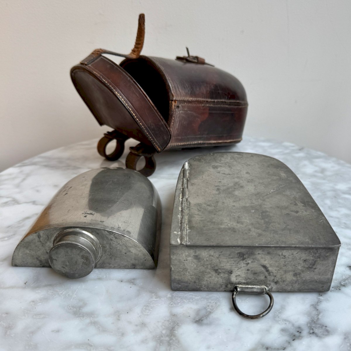 Gourde de chasse anglaise avec étui en cuir James Dixon & Sons Sheffield M3915