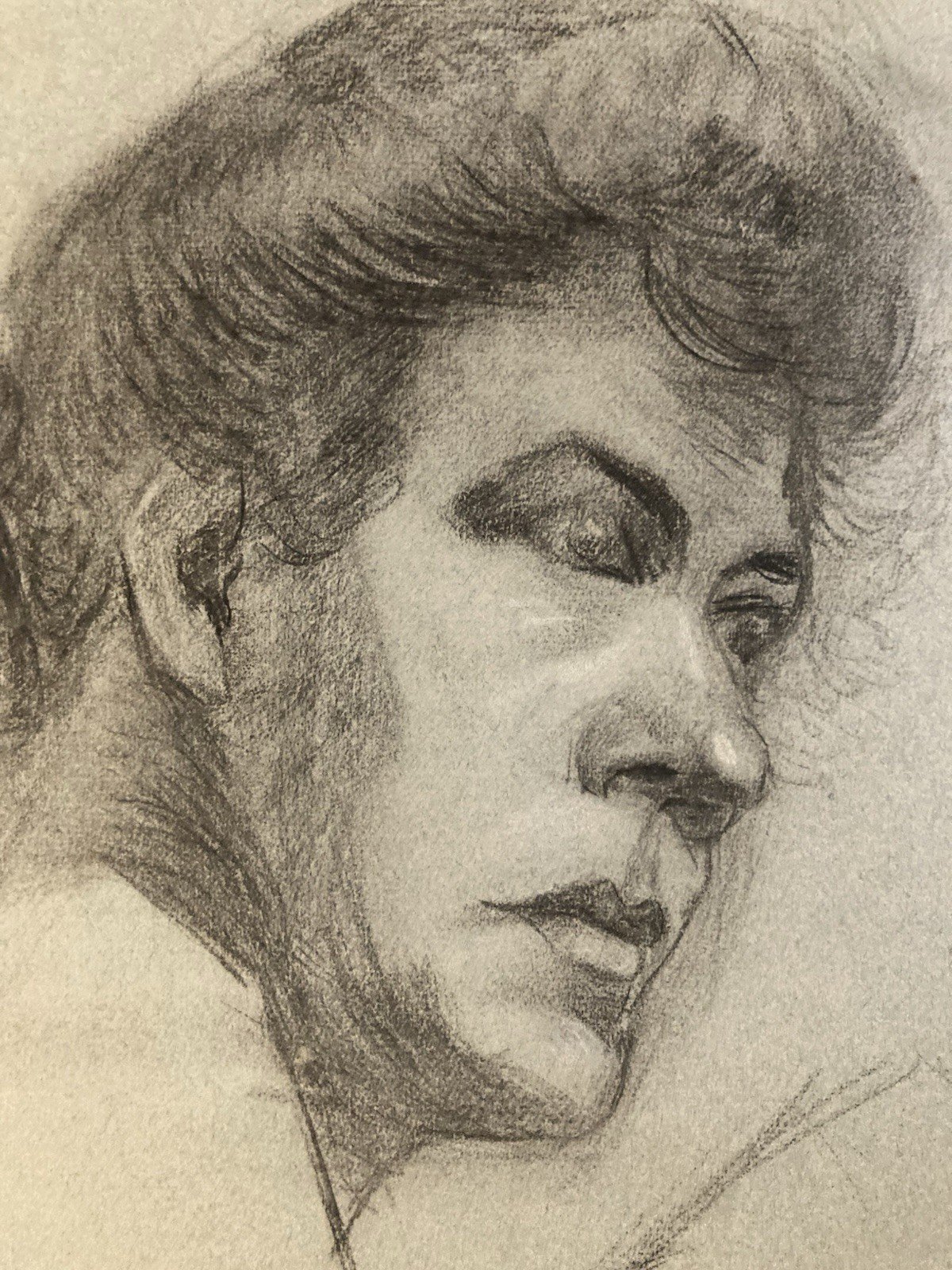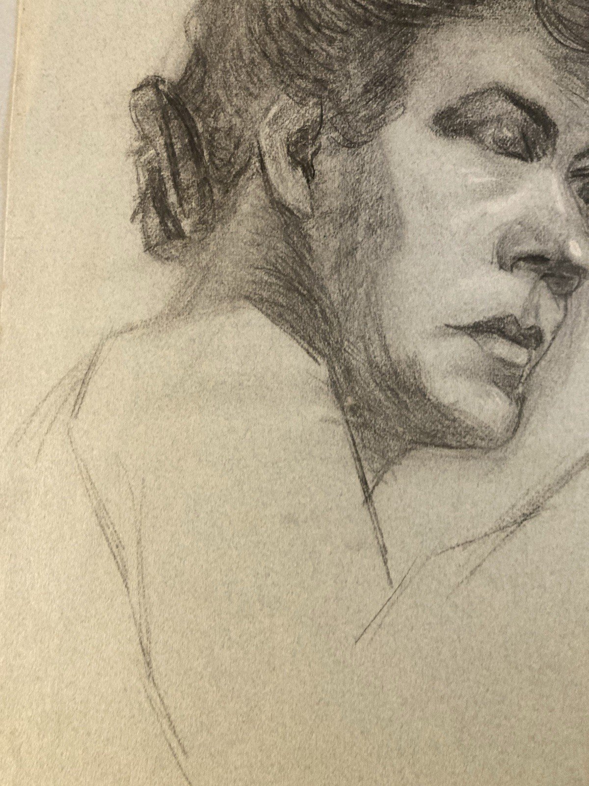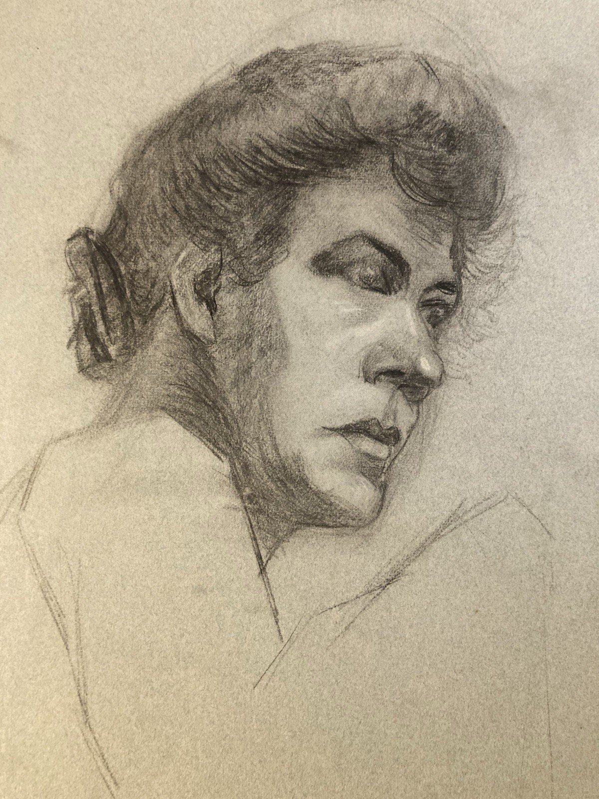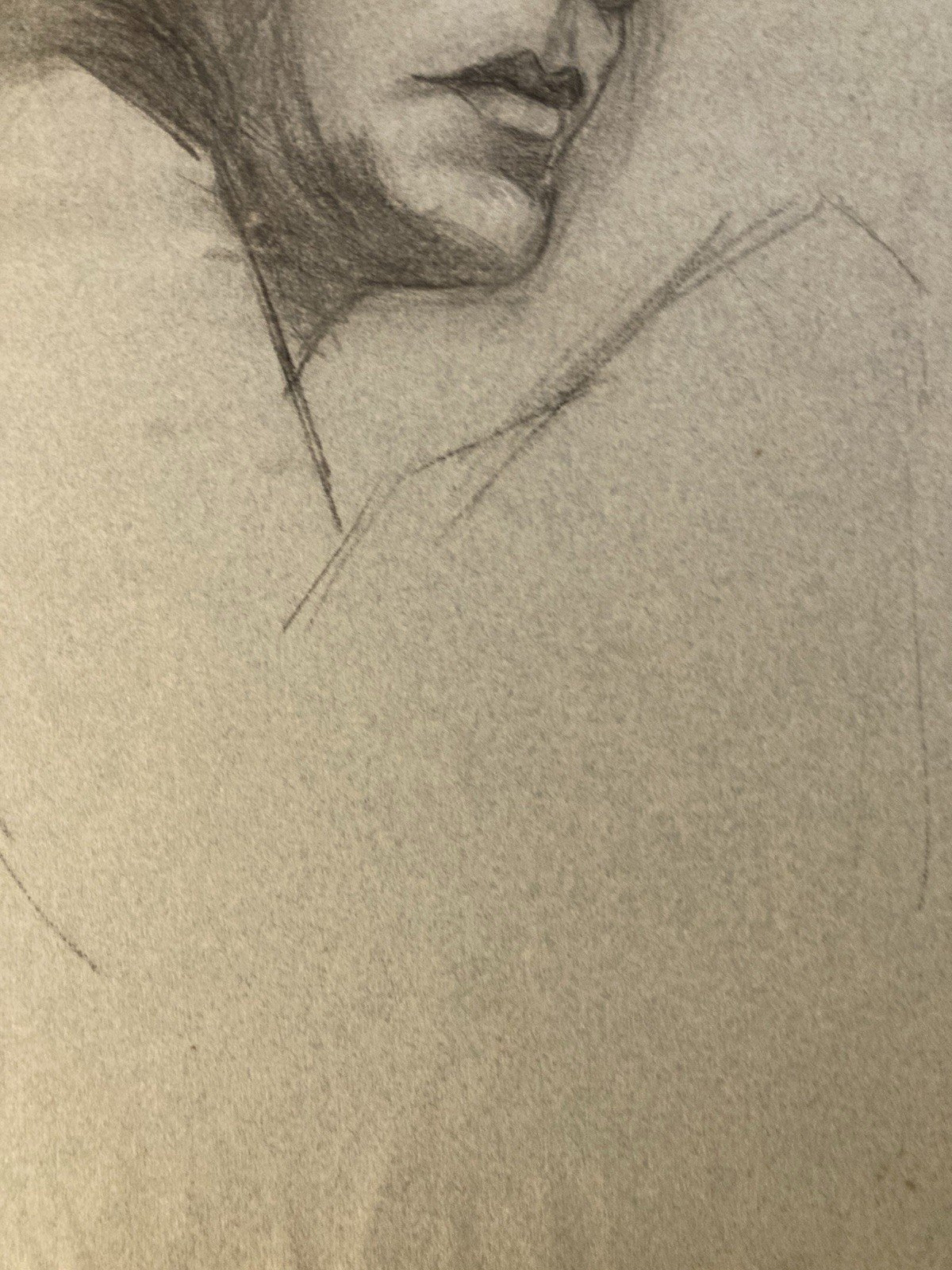 Grand Dessin Mine De Plomb Crayon femme XIXe portrait 1850 Étude Art