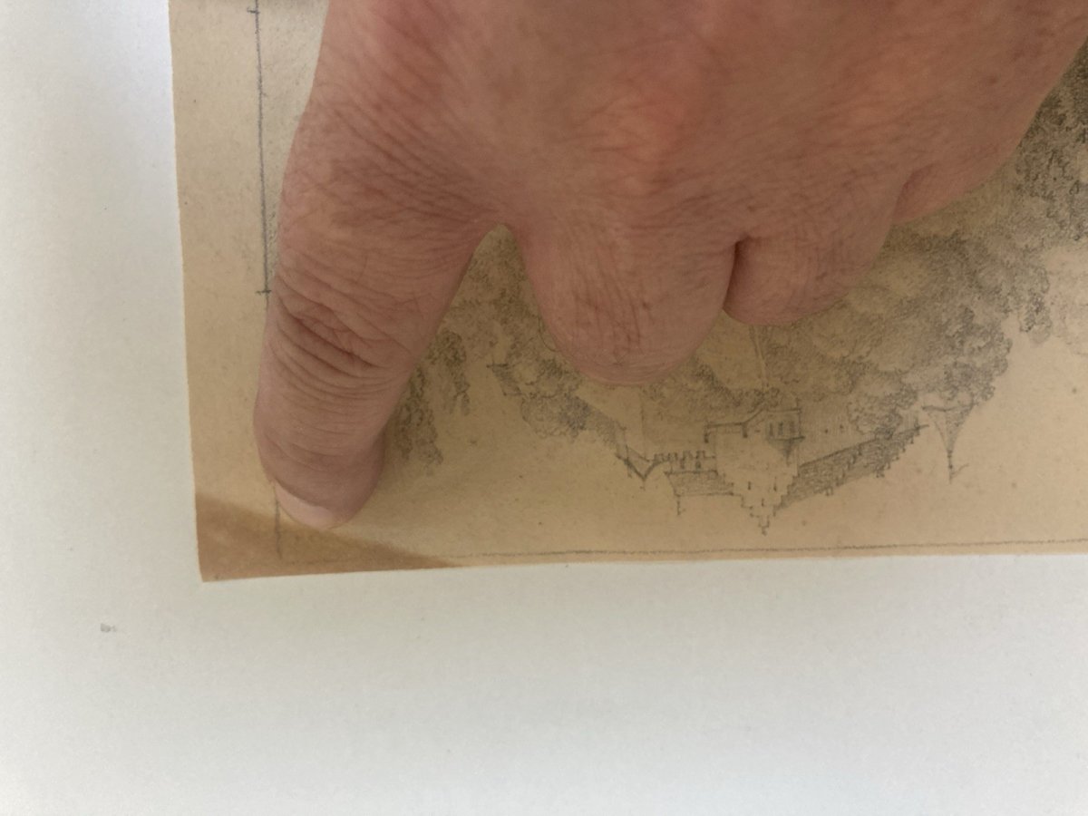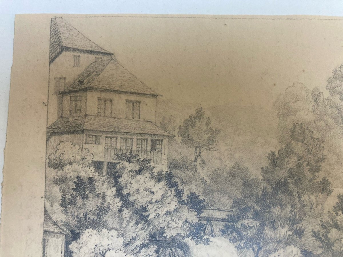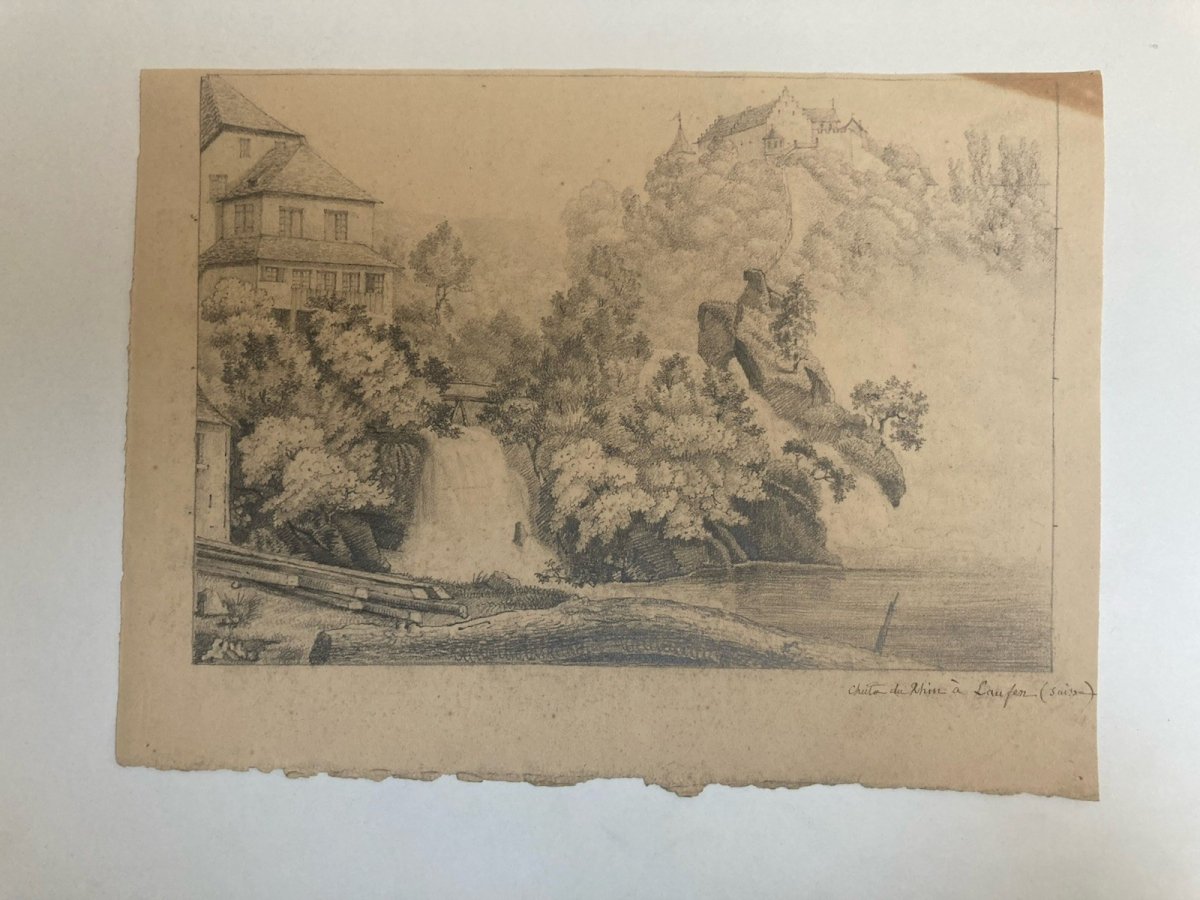 Grand Dessin XIXe 1850 crayon Chute Du Rhône Rhin Laufen Ancien A Identifier Art