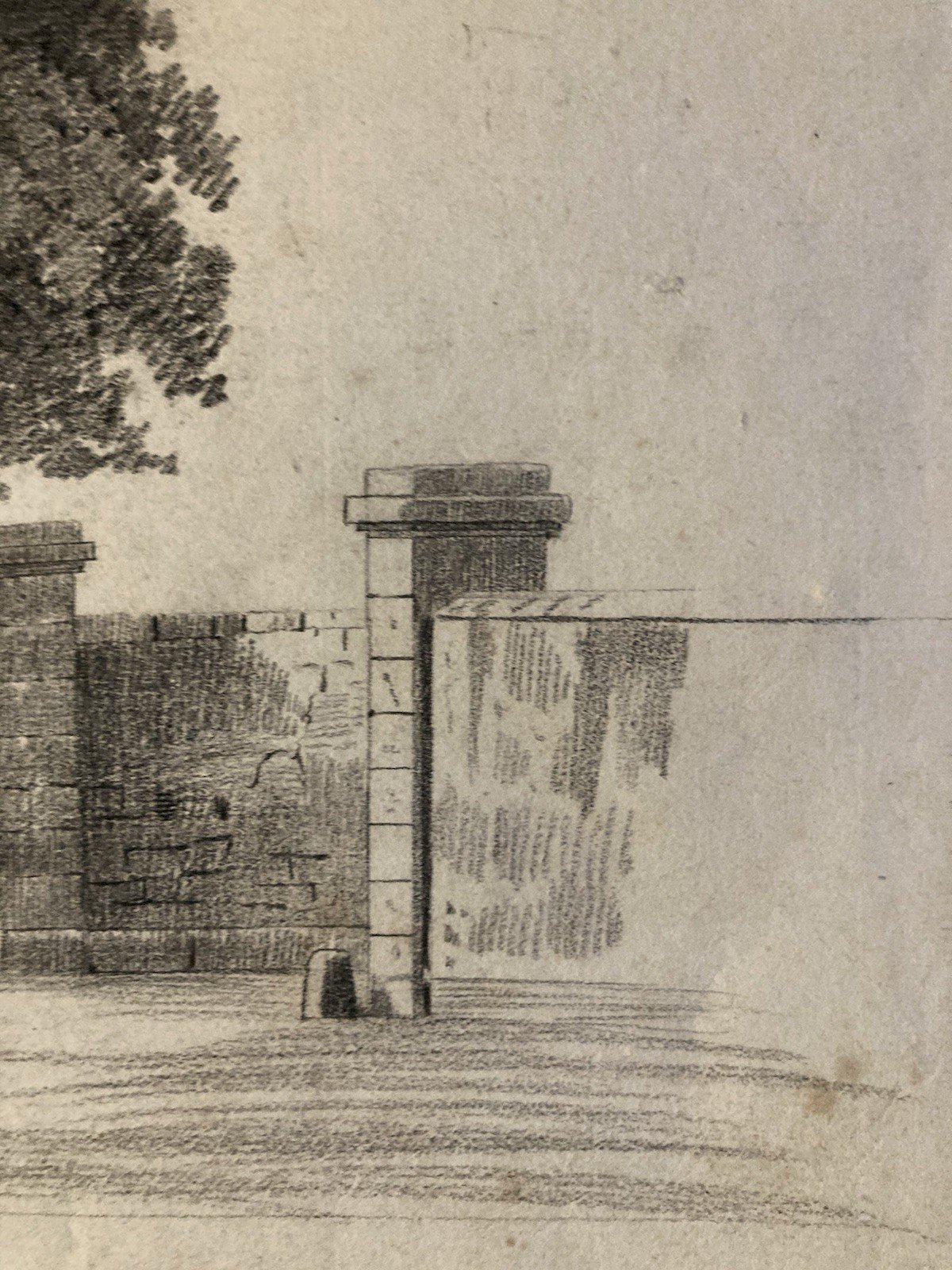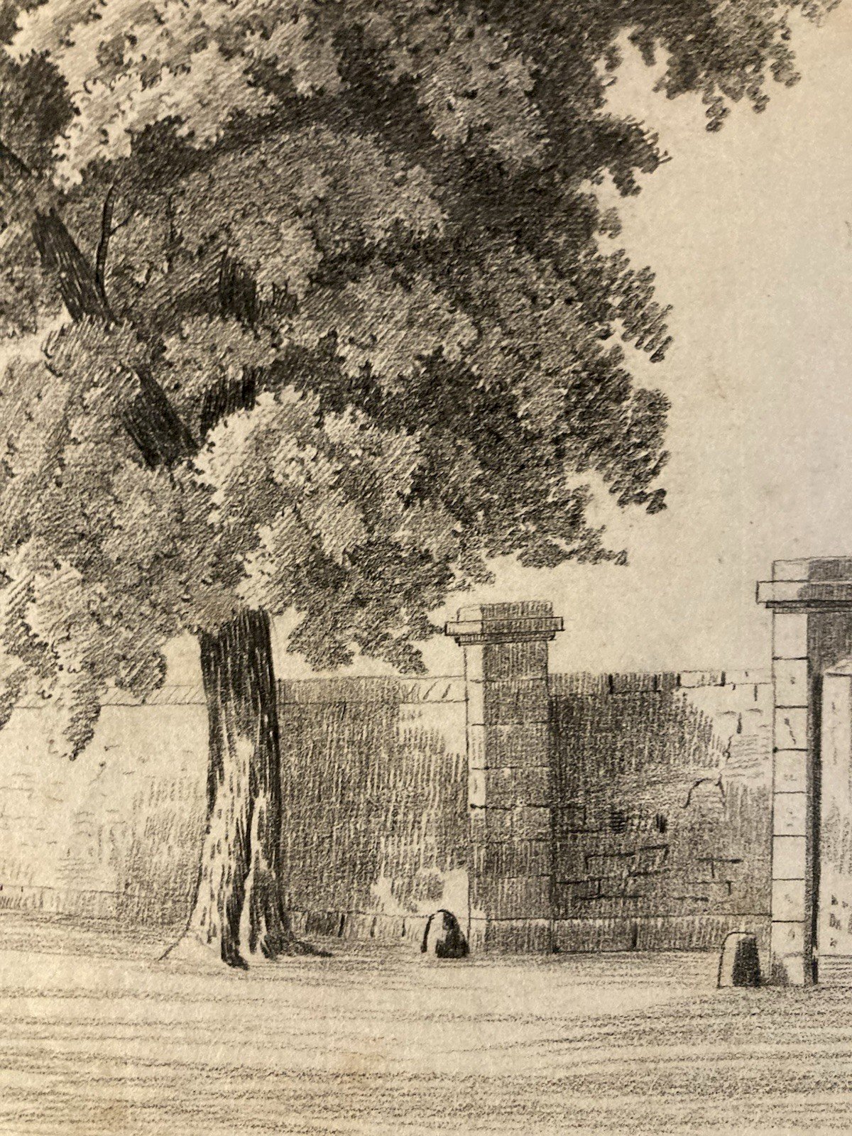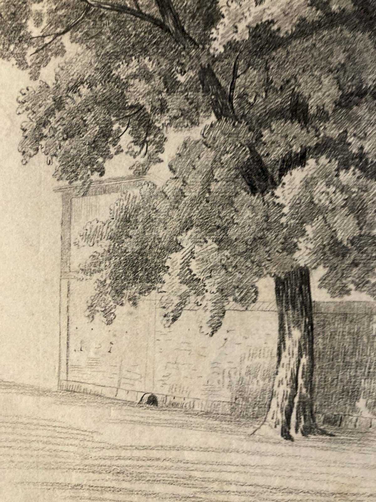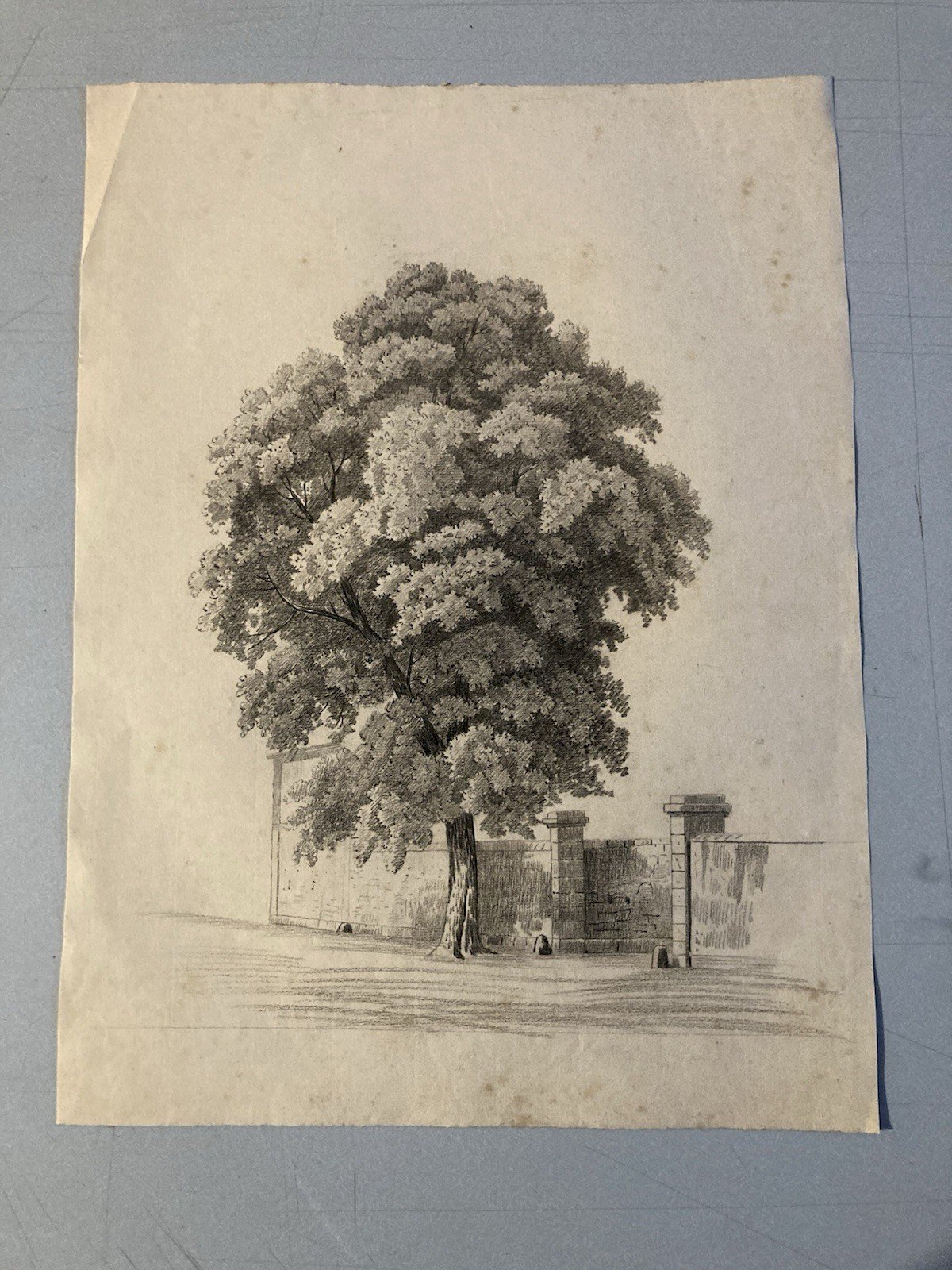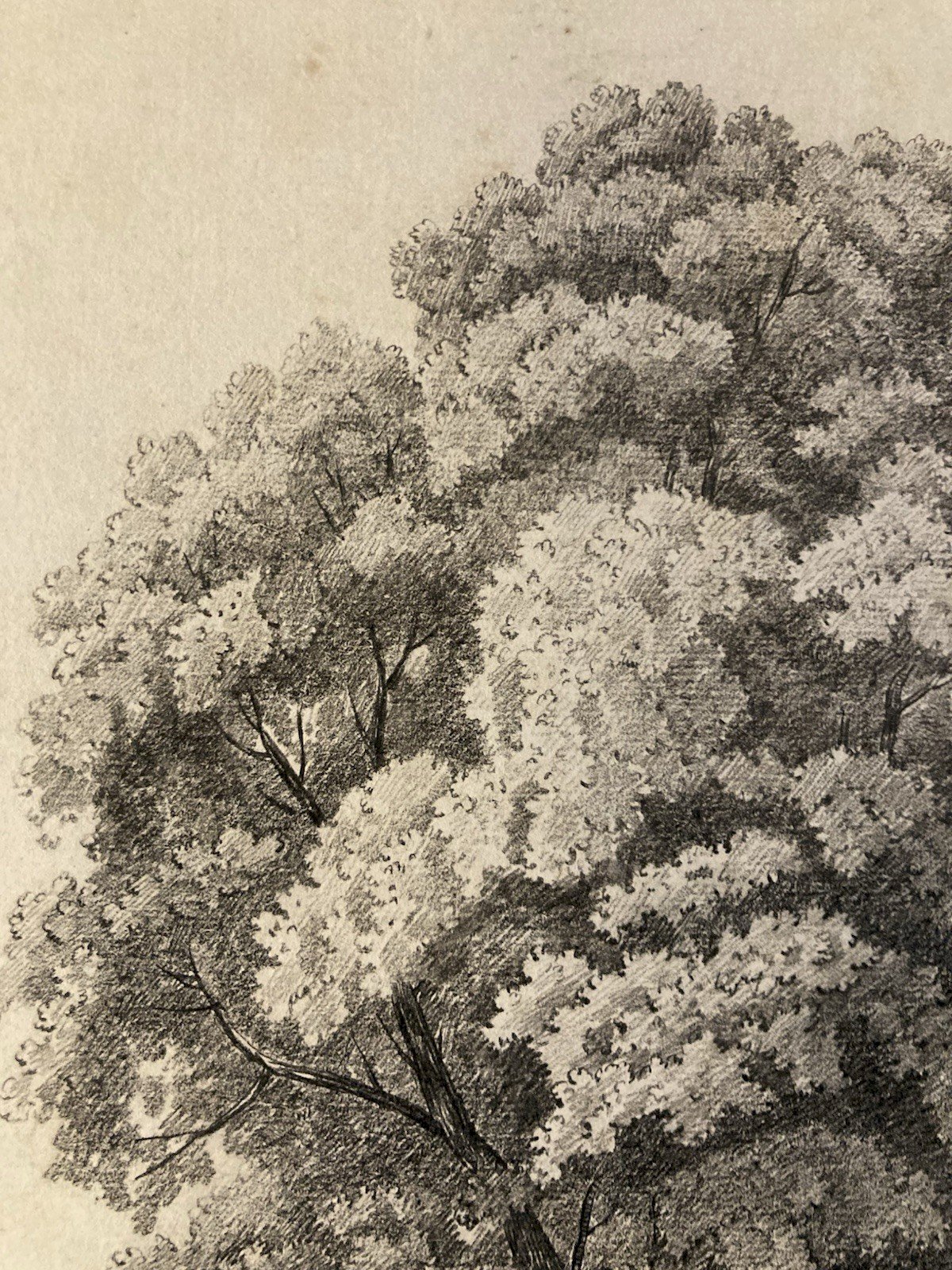 Grand Dessin XIXe 1850 crayon Paysage Etude Arbre Ancien A Identifier Feuille
