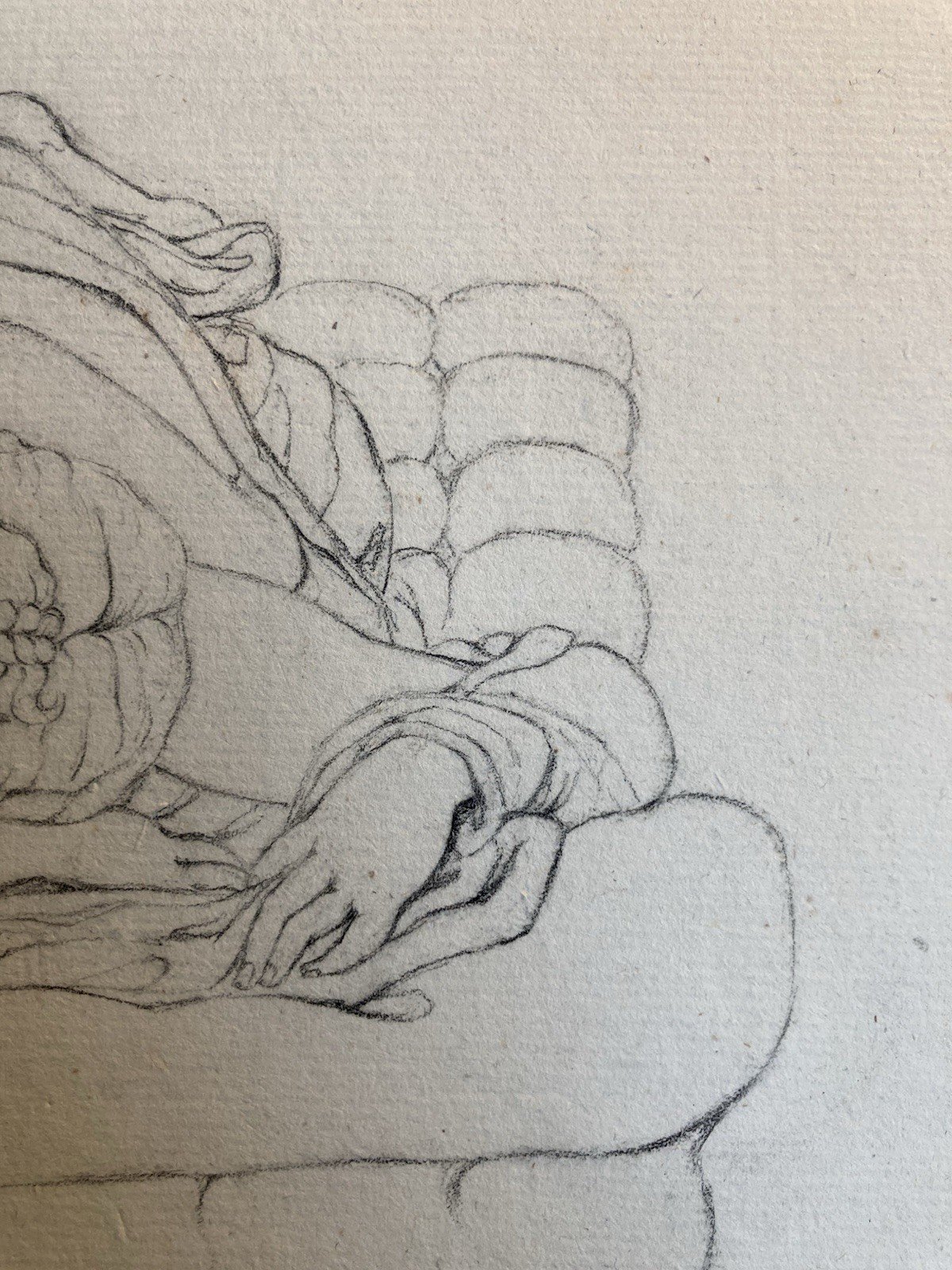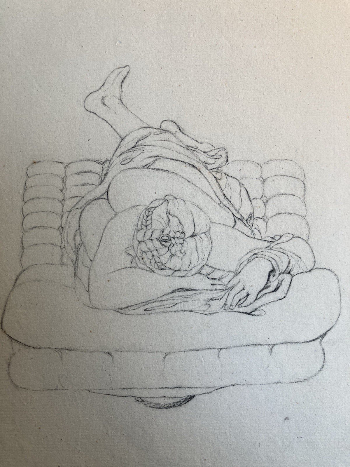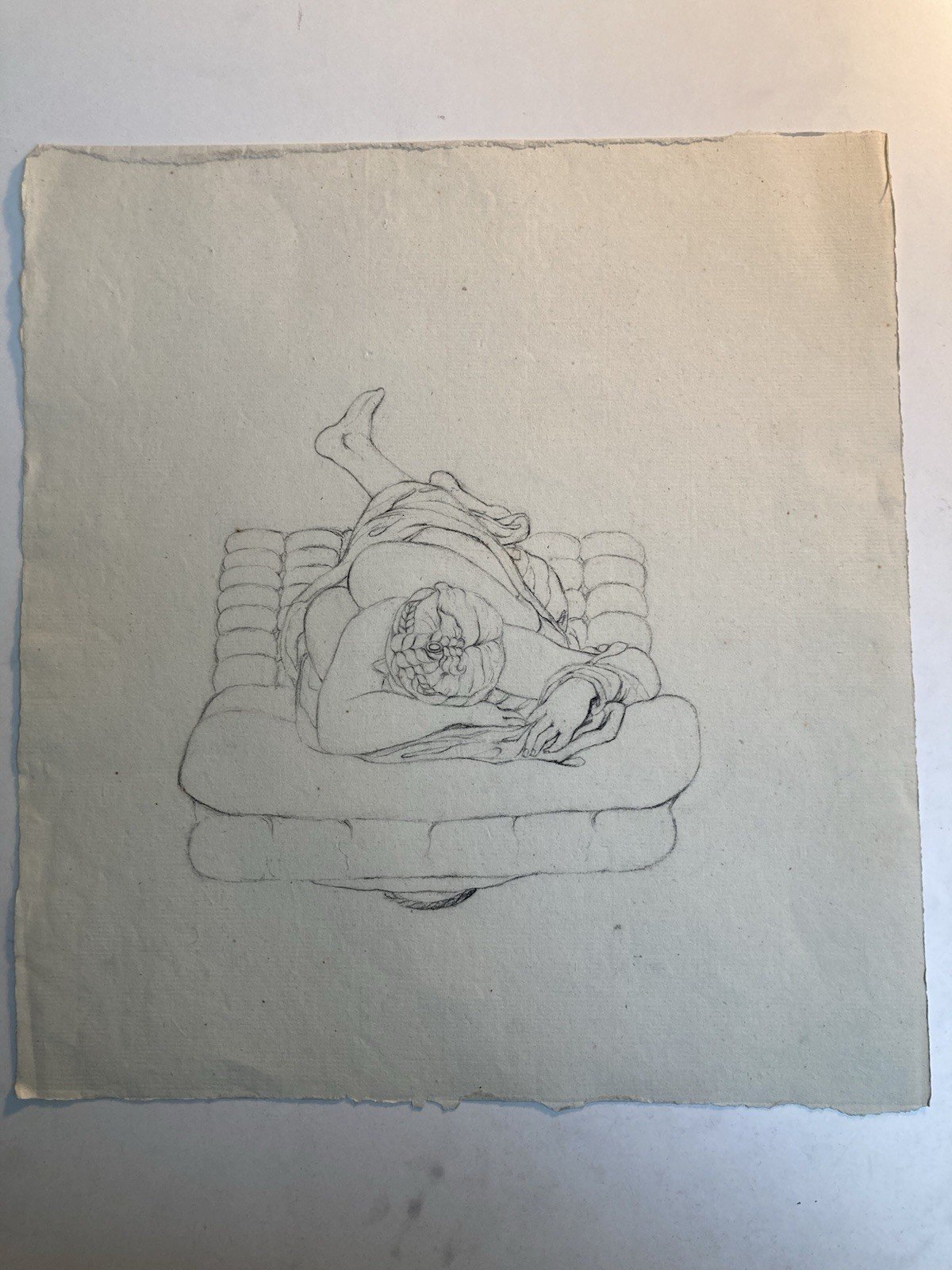 Grand Dessin XIXe antique Nu Femme crayon Art Ancien 1850 Couché Grec Erotisme