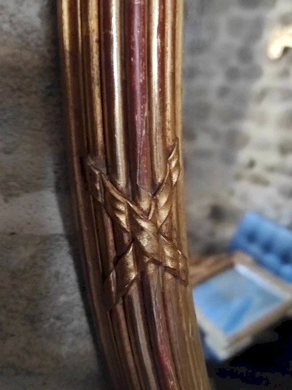 Grand miroir ovale ancien Doré à la feuille d'or en bois sculpté, le miroir est d'époque et intacte Il a toujours été accroché au mur de sa propriétaire très très soigneuse.