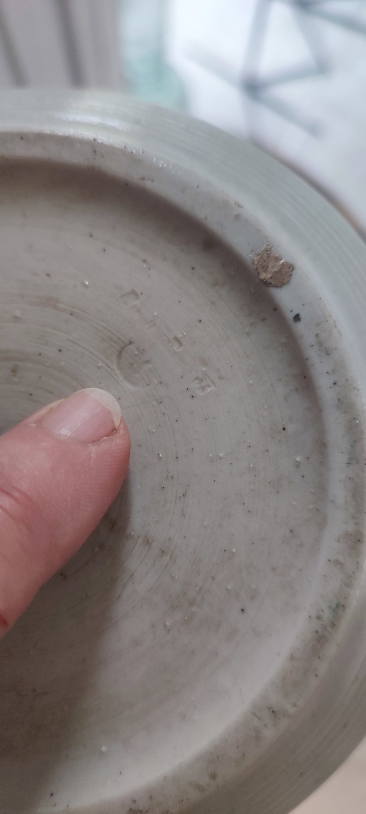 Signature en creux sous la base, non identifiée mais probablement issu d’un atelier du Sud de la France (région de Vallauris ou Digoin), vers 1950–1960.
