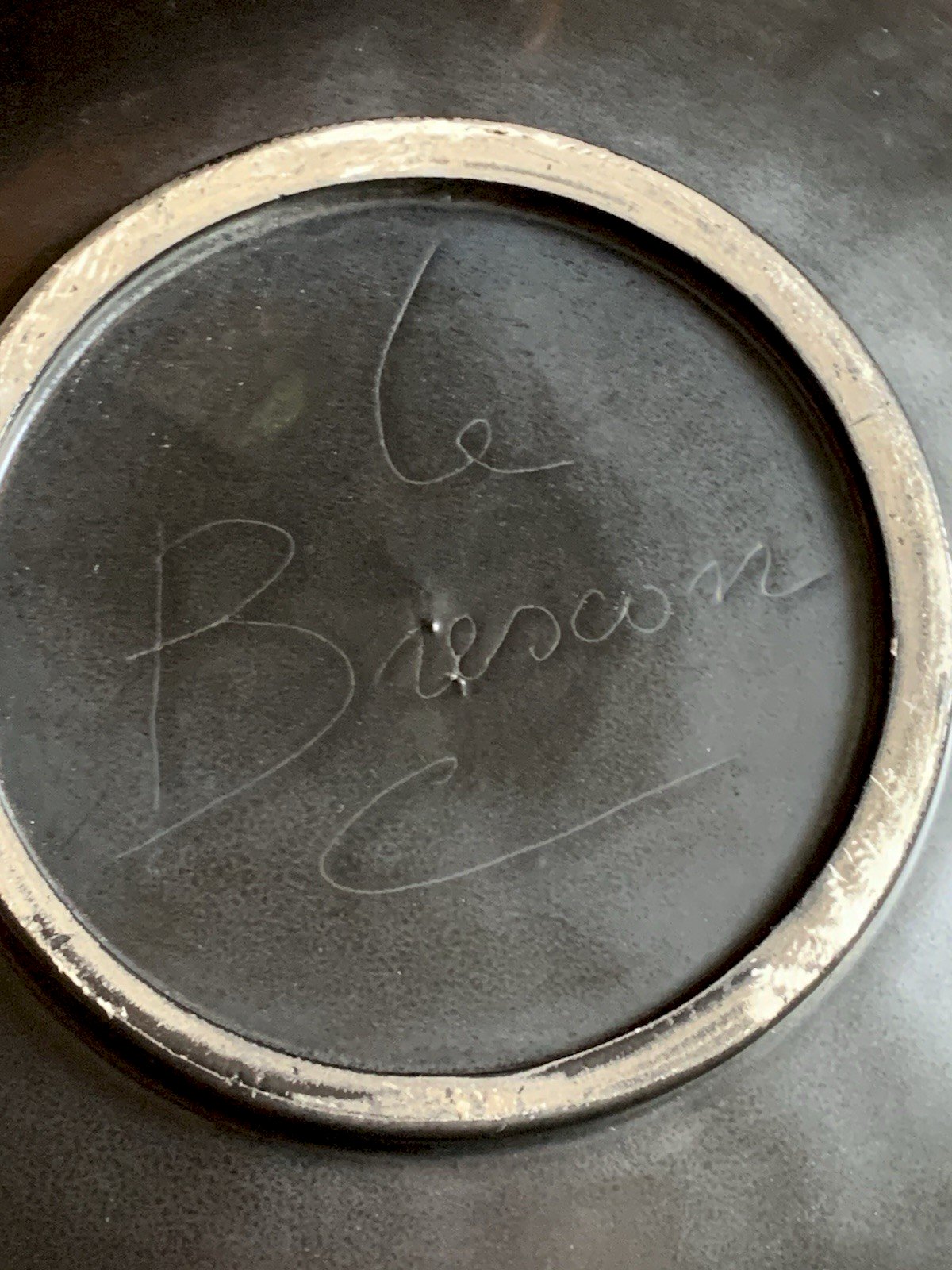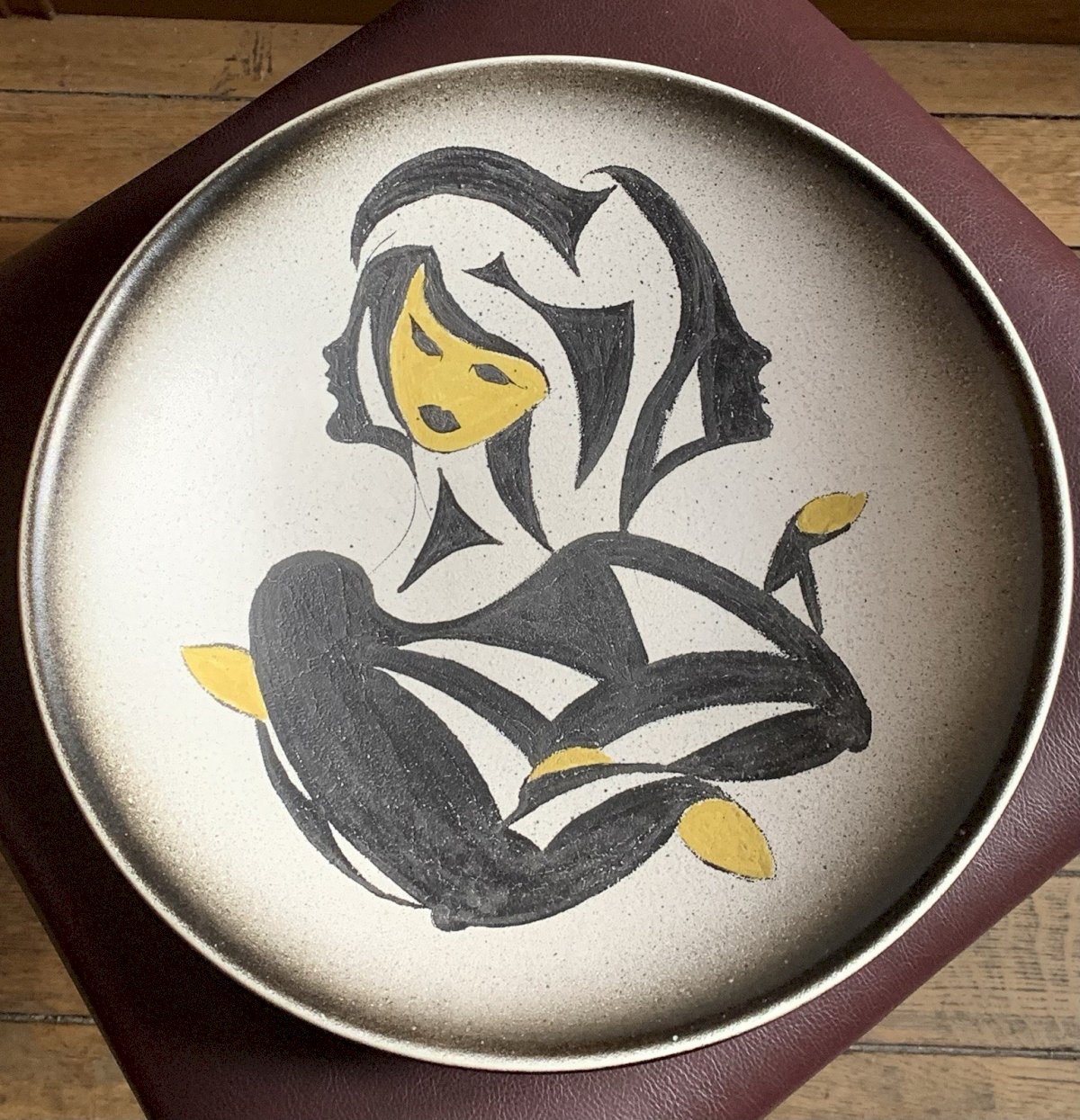 Grand plat céramique 1950' Vallauris Martigues abstrait visages signé Le Brescon