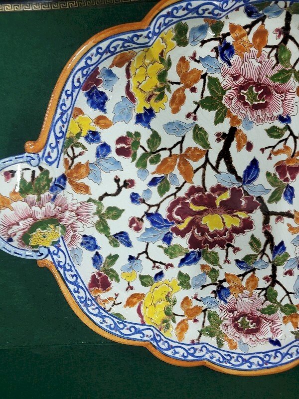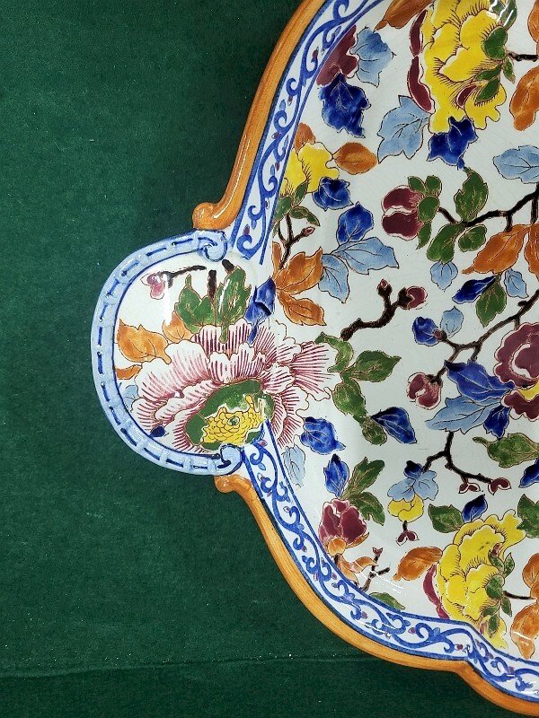 GRAND PLATEAU EN FAIENCE DE GIEN FRANCE