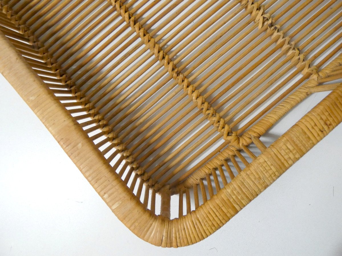 Grand plateau rectangulaire en rotin tressé attribué à la maison finlandaise Artek, des années 1950, 1960. Dimensions 52 x 39 x 6,5 cm Structure solide en très bon état, avec une belle patine naturelle du temps et quelques légères traces d’usage visibles sur les photos. État:Occasion: Objet ayant été utilisé. Objet présentant quelques marques d'usure superficielle, ...Occasion: Objet ayant été utilisé. Objet présentant quelques marques d'usure superficielle, entièrement opérationnel et fonctionnant correctement. Il peut s'agir d'un modèle de démonstration ou d'un objet retourné en magasin après une courte période d'utilisation. les éventuelles imperfections. Couleur:Beige Type:Plateau de service Matériau:Rotin