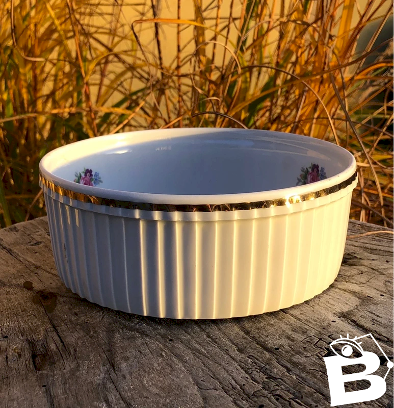 Grand ramequin rétro vintage en porcelaine Pillivuyt motif fleurs