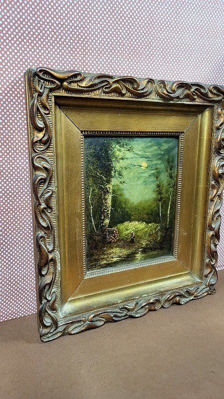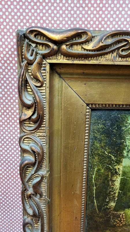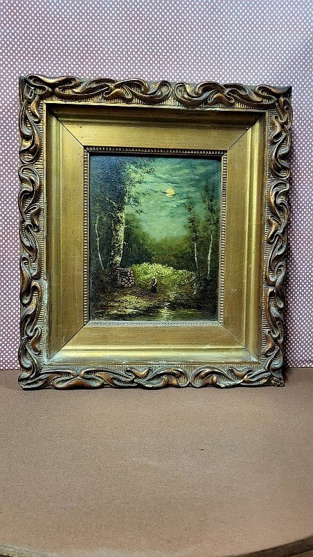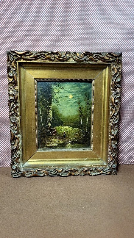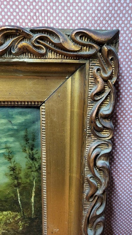 joli tableau cadre doré peinture huile sur panneau signé de L. Gleize 1913 ramassage du bois il est en bon état il y a juste le cadre qui a un manque en haut à gauche la bordure du cadre en bas à gauche et le dessus du cadre en haut à droite sont abimés (voir photos) le tableau est peint sur un panneau en carton le cadre mesure 41.3 cm de haut sur 36.3 cm de large le tableau mesure 24 cm de haut sur 19 cm de large Type:Huile Caractéristiques:Encadré, Sur toile Thème:Paysage