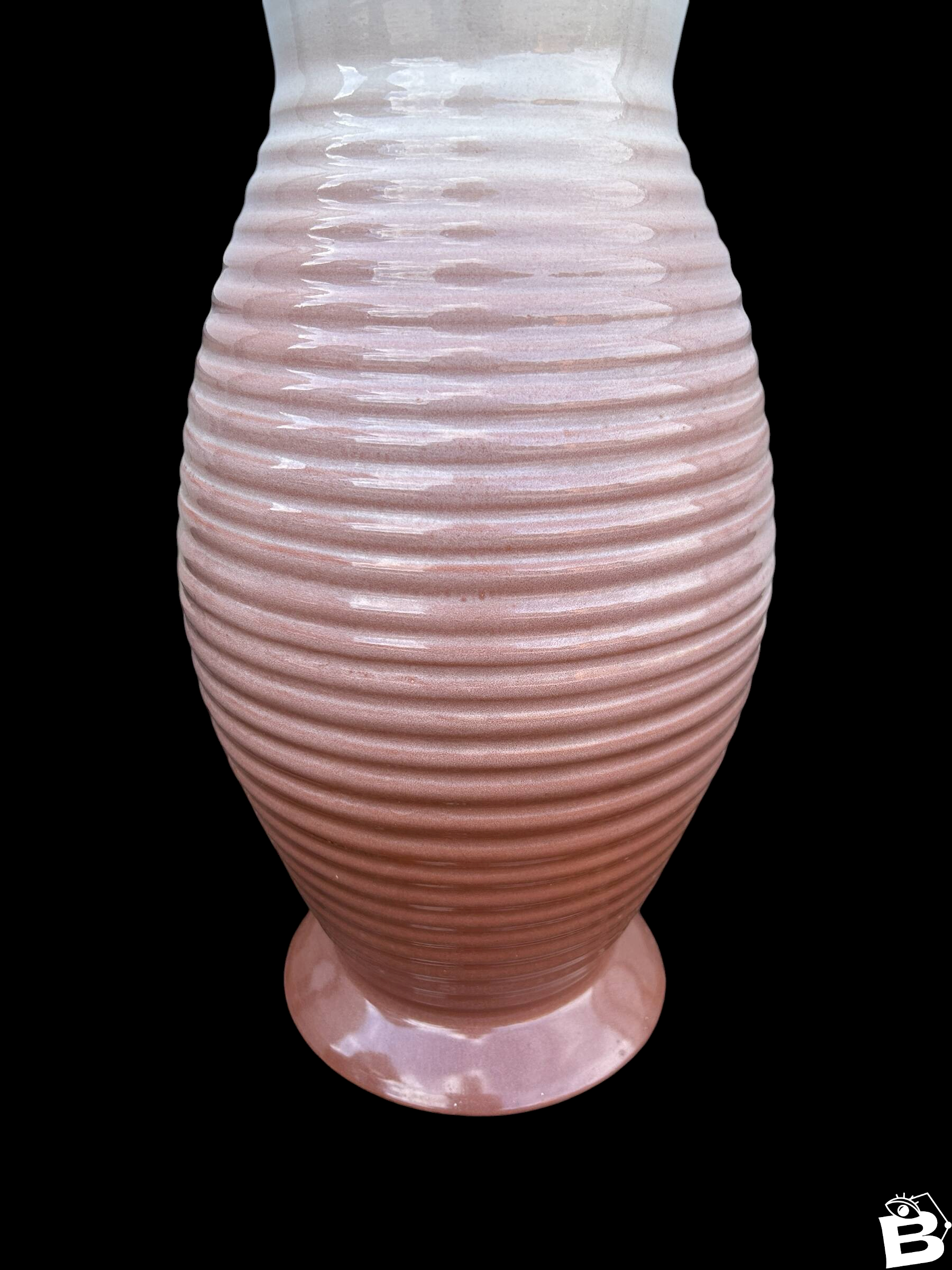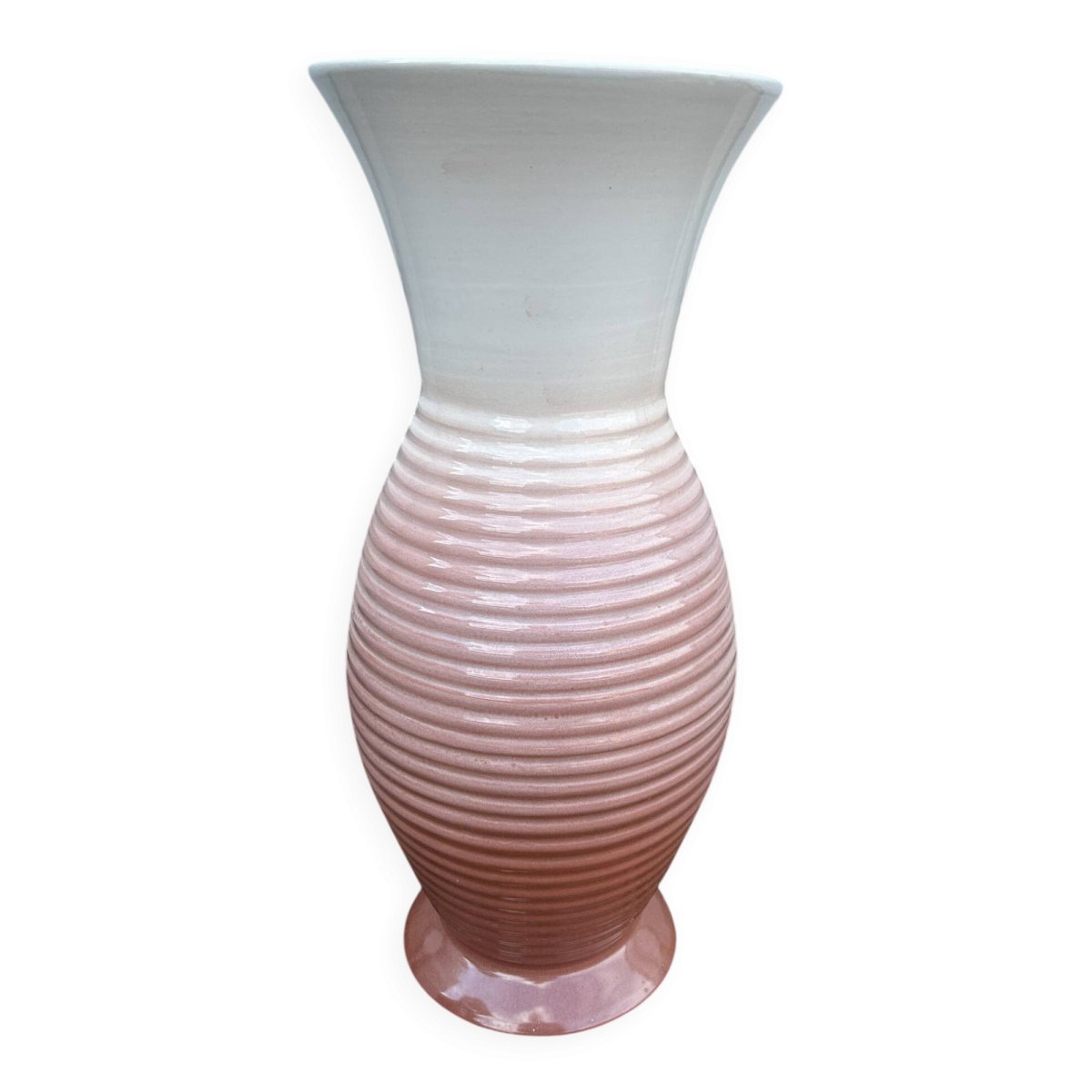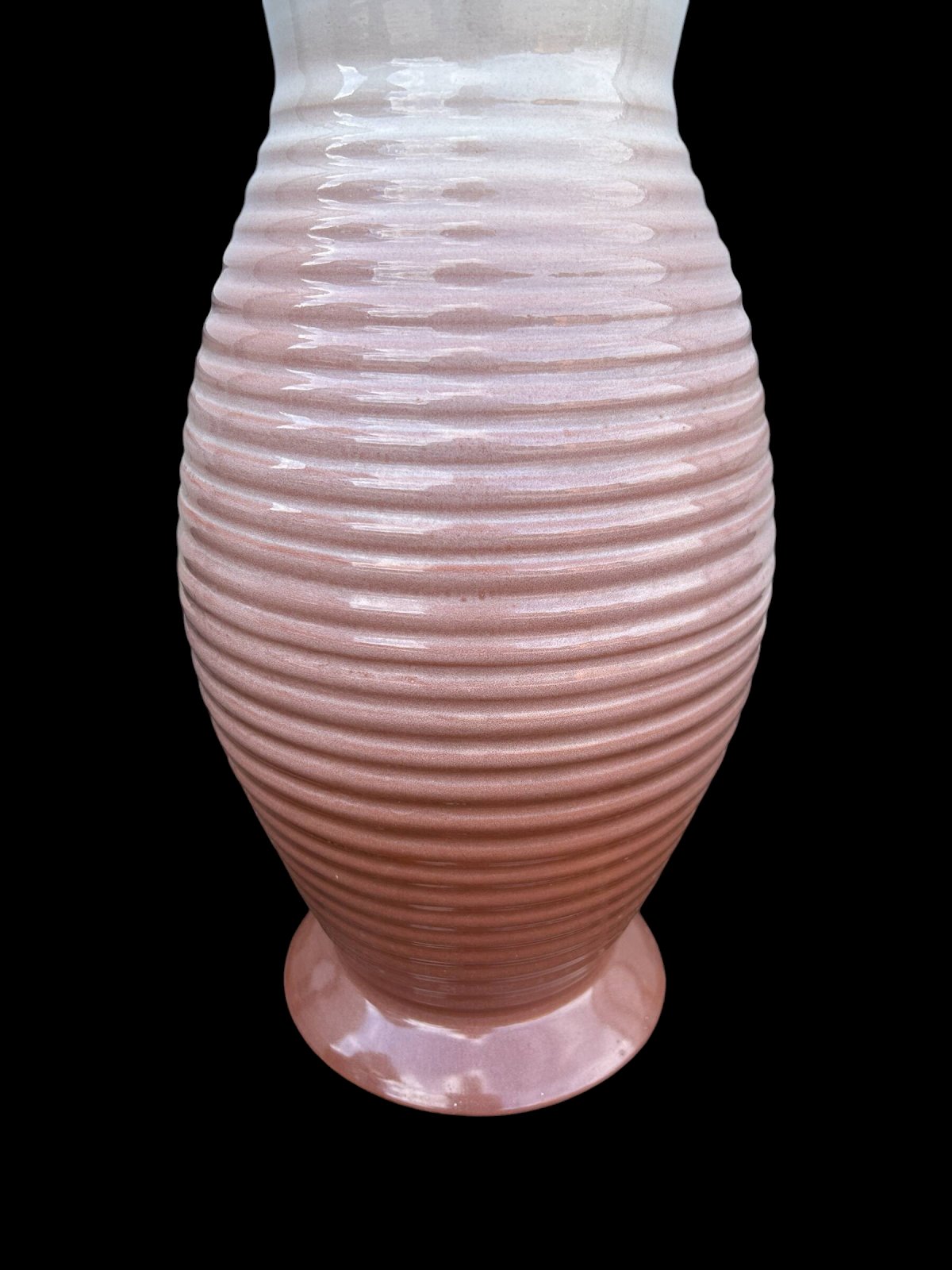 Grand vase en céramique rose et beige réalisé dans les années 80.