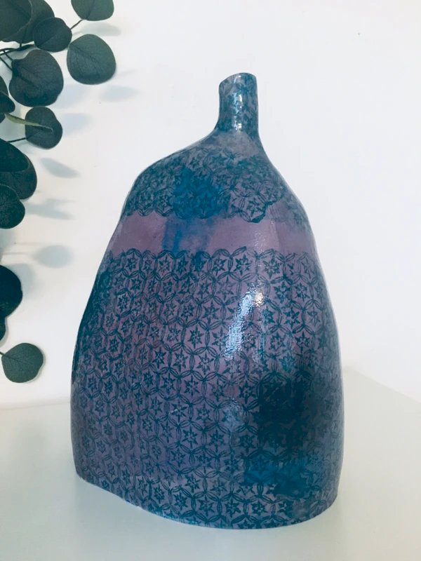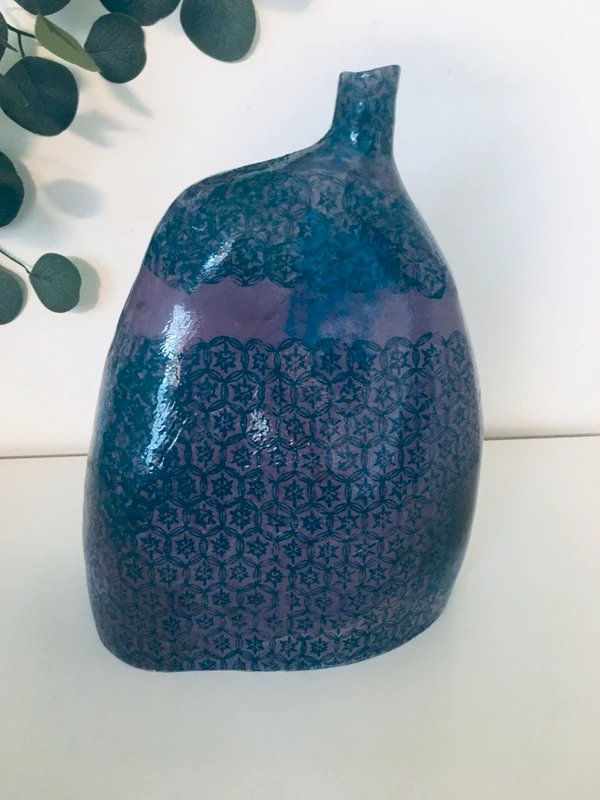 Je peux diminuer les frais de port ✨ Grand vase de fabrication artisanale signé Forme organique, émail violet/bleu Hauteur 28 cm Très bon état général Pour deux articles achetés dans mon dressing, le troisième est offert ☺️( le moins cher des trois …) Me contacter pour l’achat d’un lot Réduction de frais de port possible pour les vases,les assiettes, les bols#retro#vintage#vaissellevintage#vaisselleancienne#vaisselleanglaise#artdeco#annees70#boheme