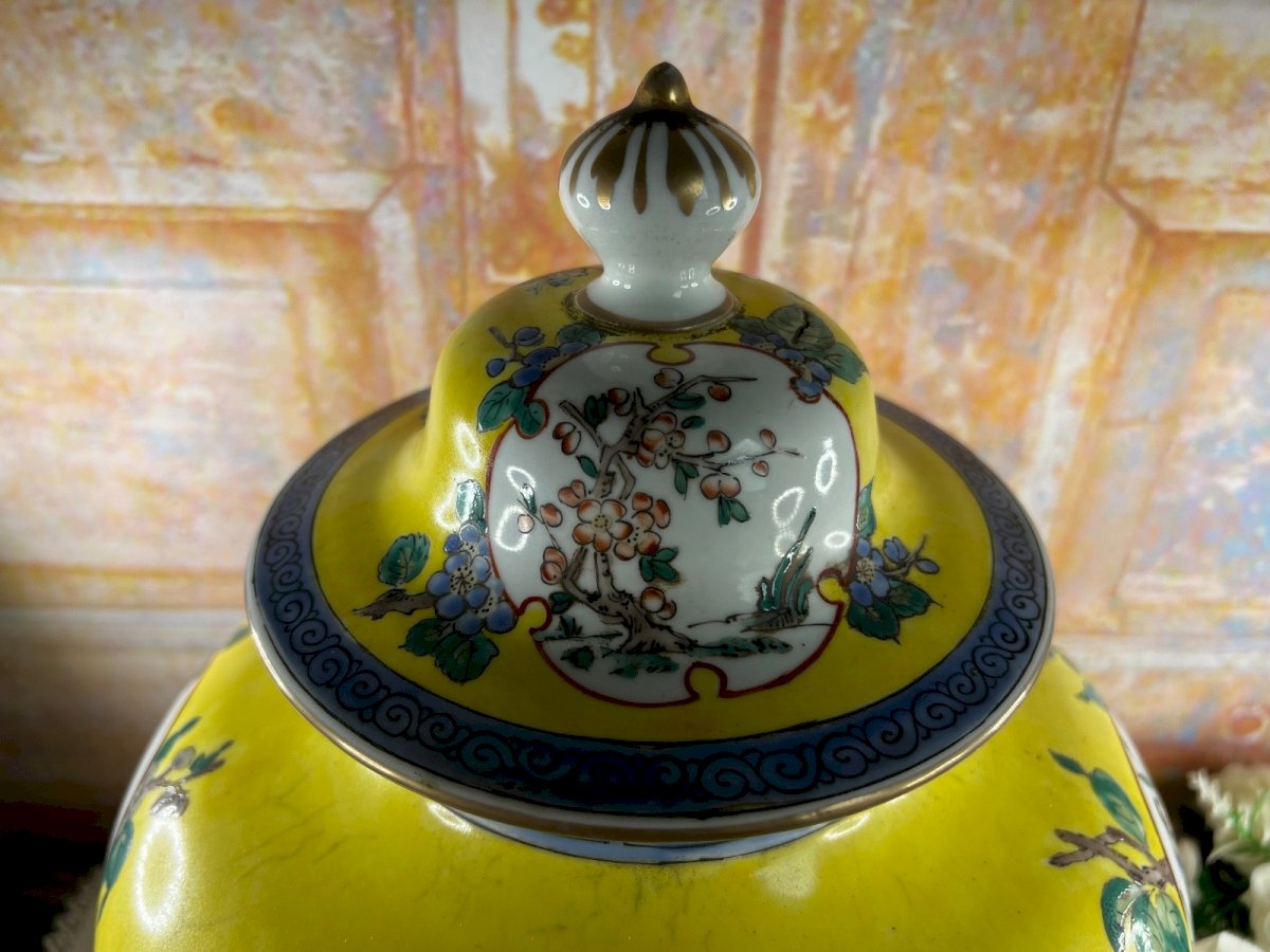 Grand vase couvert en porcelaine chinoise – décor Famille Jaune – Chine 1920
