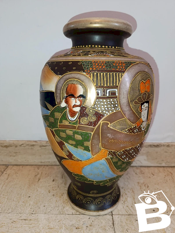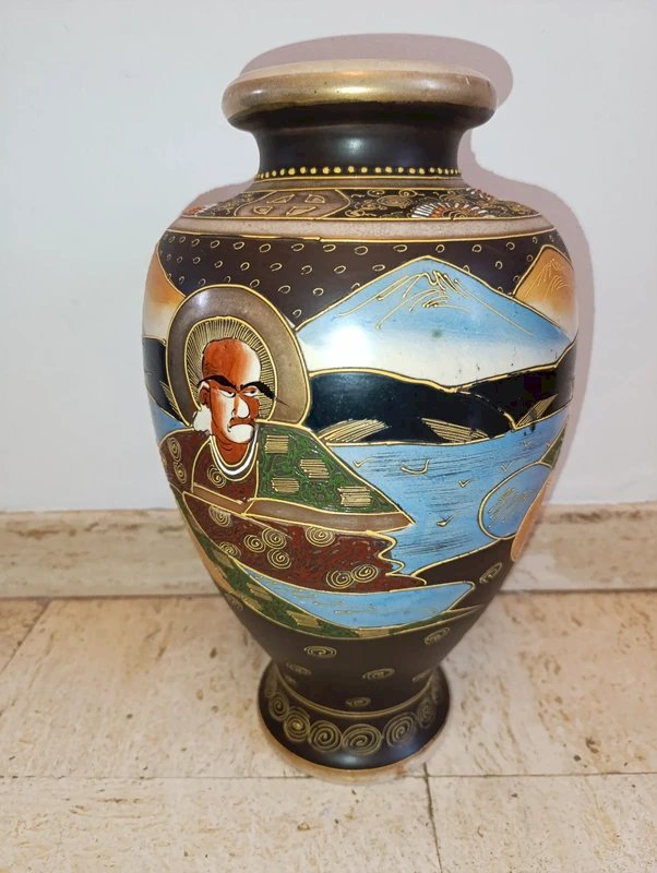 grand vase japonais satsuma a decor de personnage et paysage en bon etat quelques petites marques de frottements normales d'usages (voir photos) hauteur 37CM