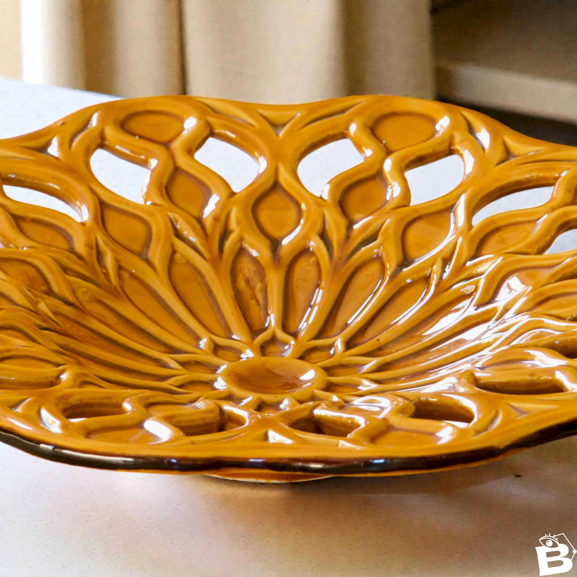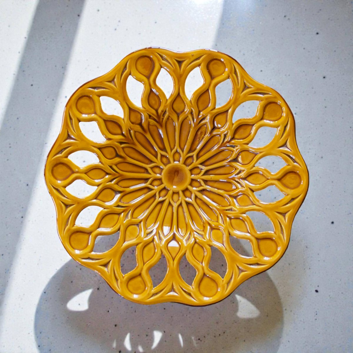 Grande et belle coupe / corbeille à fruits vintage en faïence ajourée, couleur miel / ocre caramel.Motif géométrique en relief mandala.Pièce décorative autant que fonctionnelle, idéale pour une belle table vintage ou un buffet.Esthétique typique des années 1950 - 1960.Elle est en très bon état.? 35 X 6 cm.✨ Envoi très soigné.✨ Boutique professionnelle.✨ Vous disposerez d’une facture et bénéficierez d’un SAV après chaque achat.✨ Nous avons d'autres annonces en ligne, n'hésitez pas à jeter un coup d'oeil.12/25.Pichon Uzès Vallauris Bassano dentelle Poet Laval.