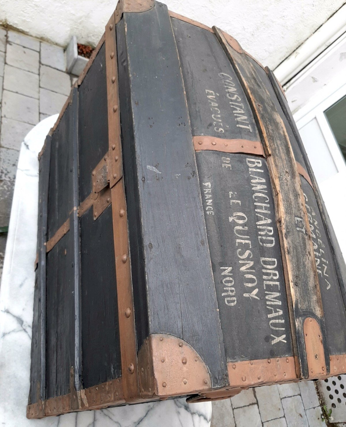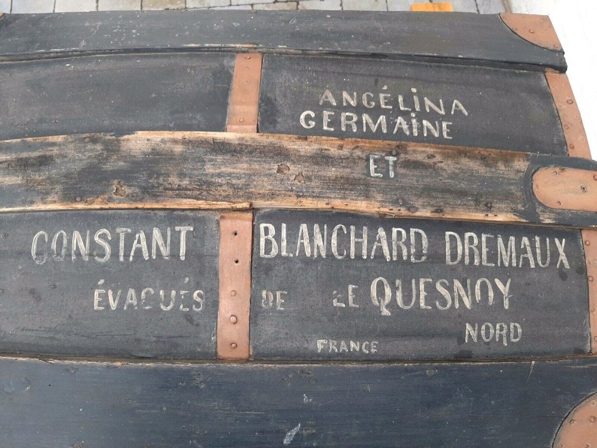 Grande Malle Ancienne, Coffre Vintage. État : "Occasion" Envoi possible en colissimo avec surcoût grande taille car elle est trop grand pour Mondial Relay selon la taille, soit 26,50€. Dimensions 70x46xh60. Pas de clef. Inscription "Angelina Germaine et Constant Blanchard Dremaux, évacués de Le Quesnoy, Nord, France", certainement des enfants (au vu de la qualité de la malle de famille aisée), lors de la 2nde guerre mondiale. Dans son jus (cf photos). Mc Décoration pour mariage, voiture ancienne, pièce de théâtre, pin up, etc., bois, cuir. Voyage, ancien, rétro, décoration, mariage, urne, noces, voiture de collection, cinéma, porte bagage, malle, caisse, cantine, accessoires, bagagerie, instrument de musique, étui fusil, vitrine, architecte d’intérieur. Carton, bois, tissu, cuir. Voyage, cantine, pièce, Harry Potter, accessoires, bagages, trésor, exode 1939 1945. État:Occasion: Objet ayant été utilisé. Objet présentant quelques marques d'usure superficielle, ...Occasion: Objet ayant été utilisé. Objet présentant quelques marques d'usure superficielle, entièrement opérationnel et fonctionnant correctement. Il peut s'agir d'un modèle de démonstration ou d'un objet retourné en magasin après une courte période d'utilisation. les éventuelles imperfections. Type:Coffre Couleur:Bois foncé Hauteur:51-70 cm Matière:Bois Longueur:70 cm Largeur:30-50 cm