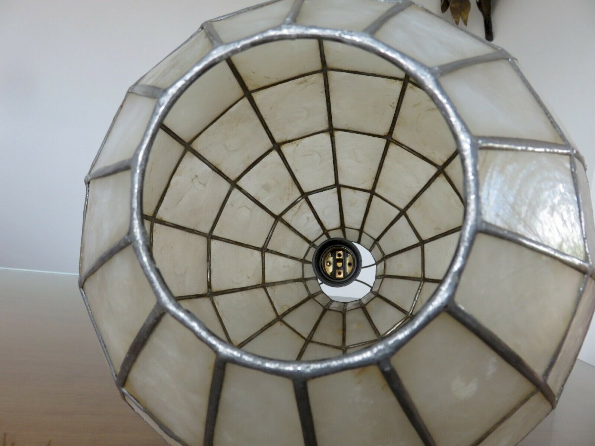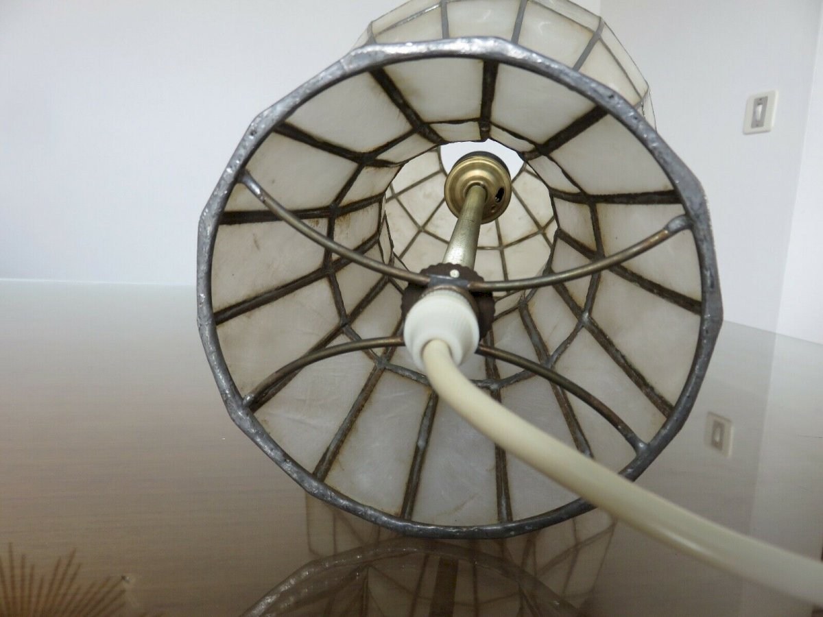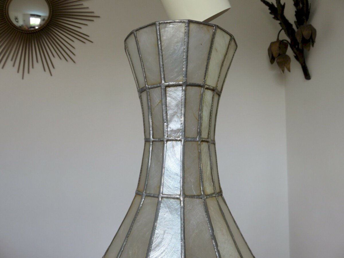 TRES GRANDE SUSPENSION EN NACRE BLANCHE FORME Â " GOUTTE D'EAU "ANNEES 70TRES BELLE FORME PEU COURANTEHAUTEUR SOUS PLAFOND 74 CM HAUTEUR DE LA SUSPENSION 52 CM DIAMETRE 26 CMINFIMES TRACES DU TEMPS SUR LA NACREDOUILLE A VIS GROS CULOT E27PARFAIT ETAT DE FONCTIONNEMENTTRES BEL ECLAIRAGE ENVOI EN EMBALLAGE TRES SOIGNE.