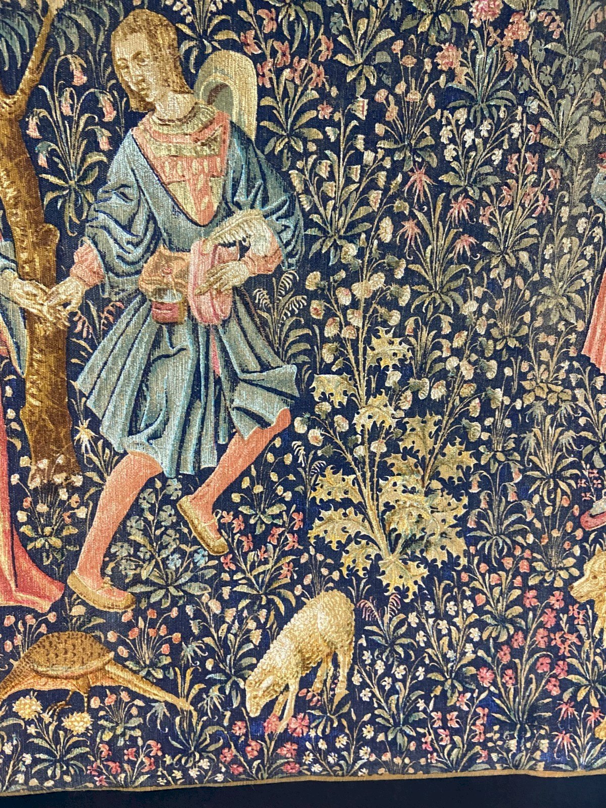Grande tapisserie 190x110 style XVe La Danse par Artis Flora Musée du Louvres