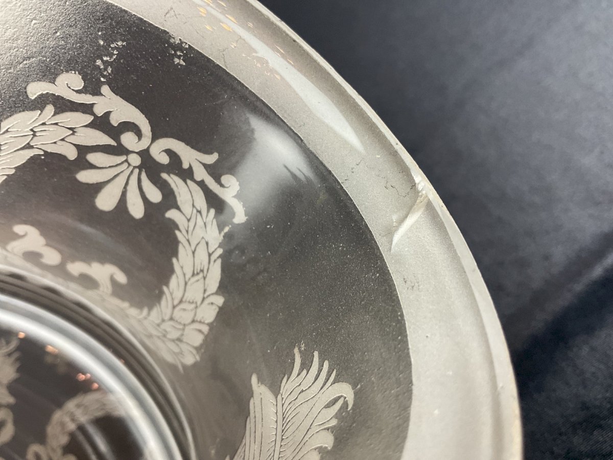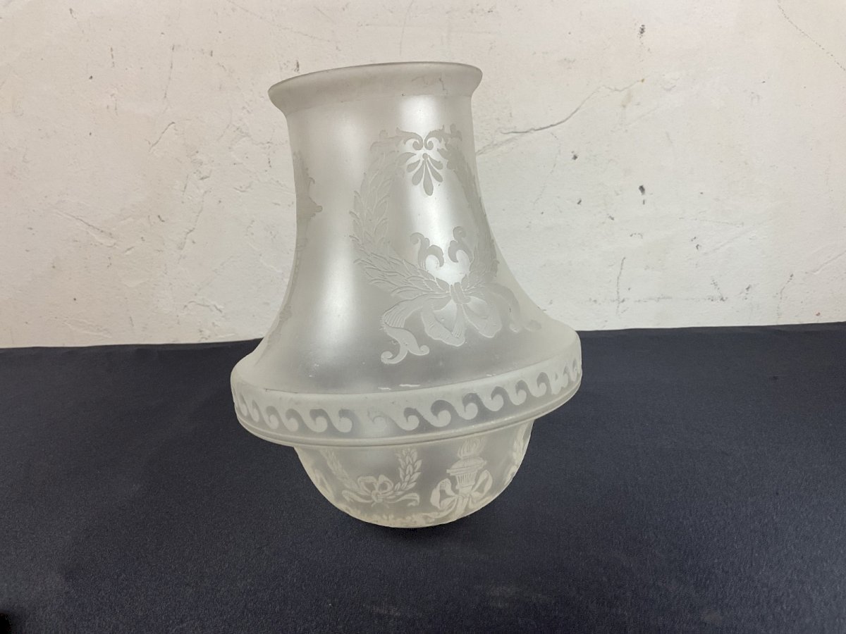 Grande tulipe globe de lampe à pétrole décor Empire Saint Denis Baccarat ……